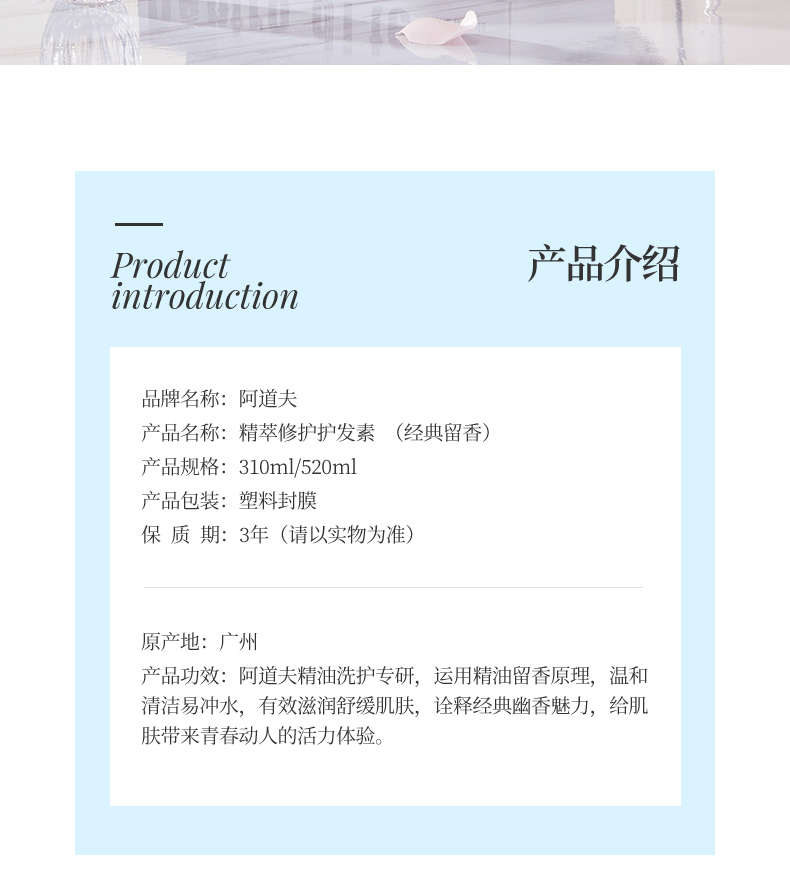 商品名称:阿道夫(ADOLPH)精油洗护专研 精萃修护护发素 520ml