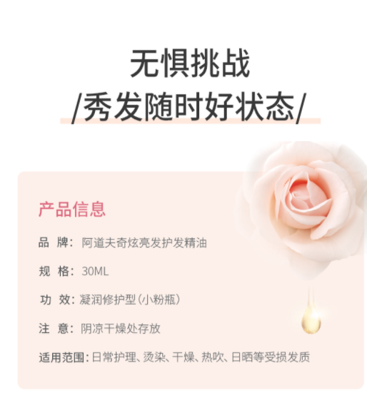 商品名称:阿道夫精油香护理专研奇炫香护理护发精油(凝润修护)30ml