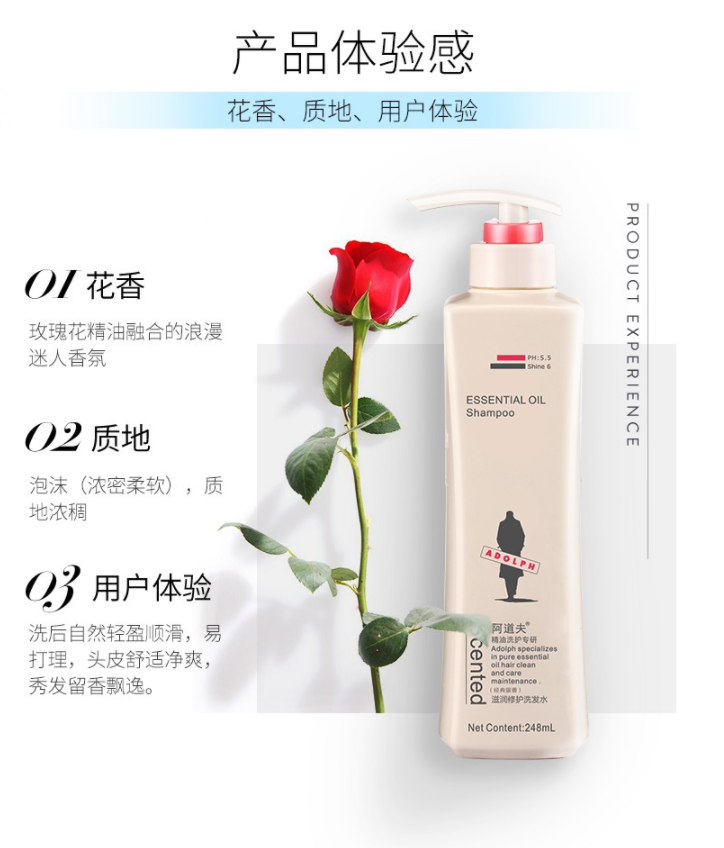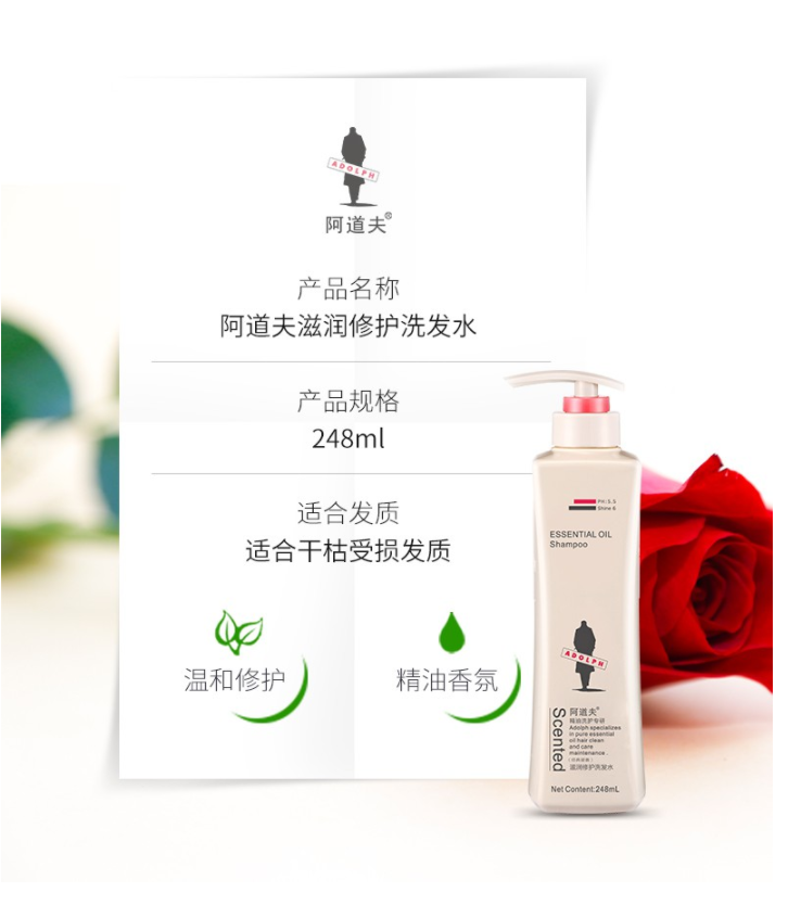 商品名称:阿道夫精油香护理专研洗发水(滋润修护)248ml