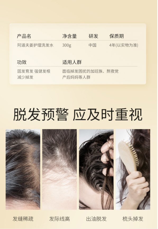 商品名称:阿道夫姜护理专研洗发水(防脱育发)300ml