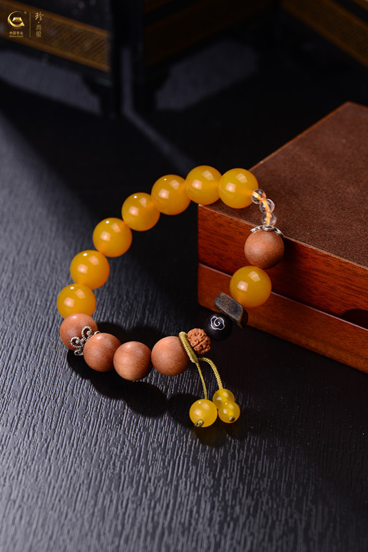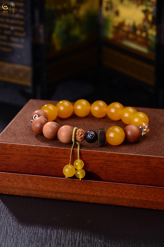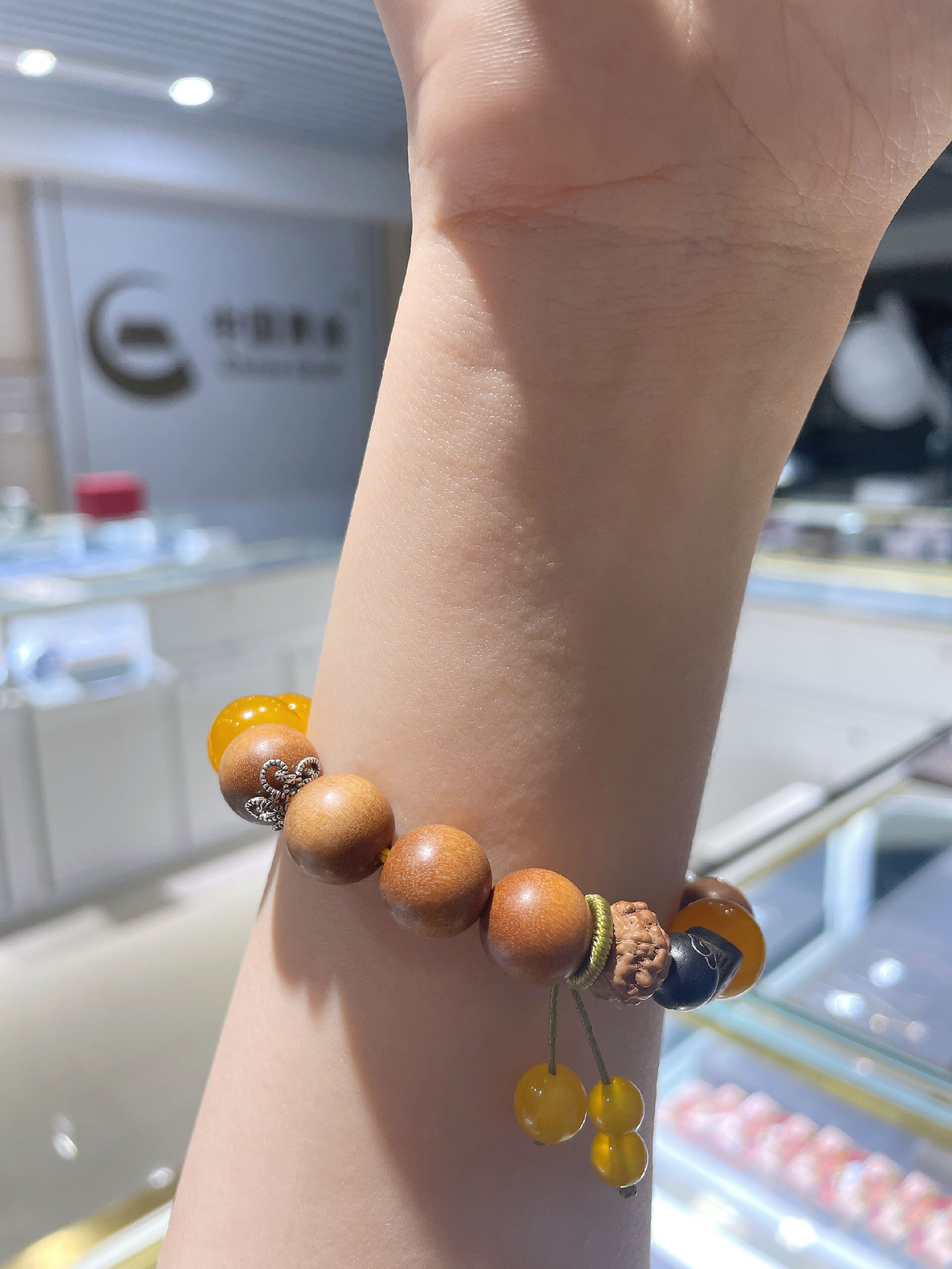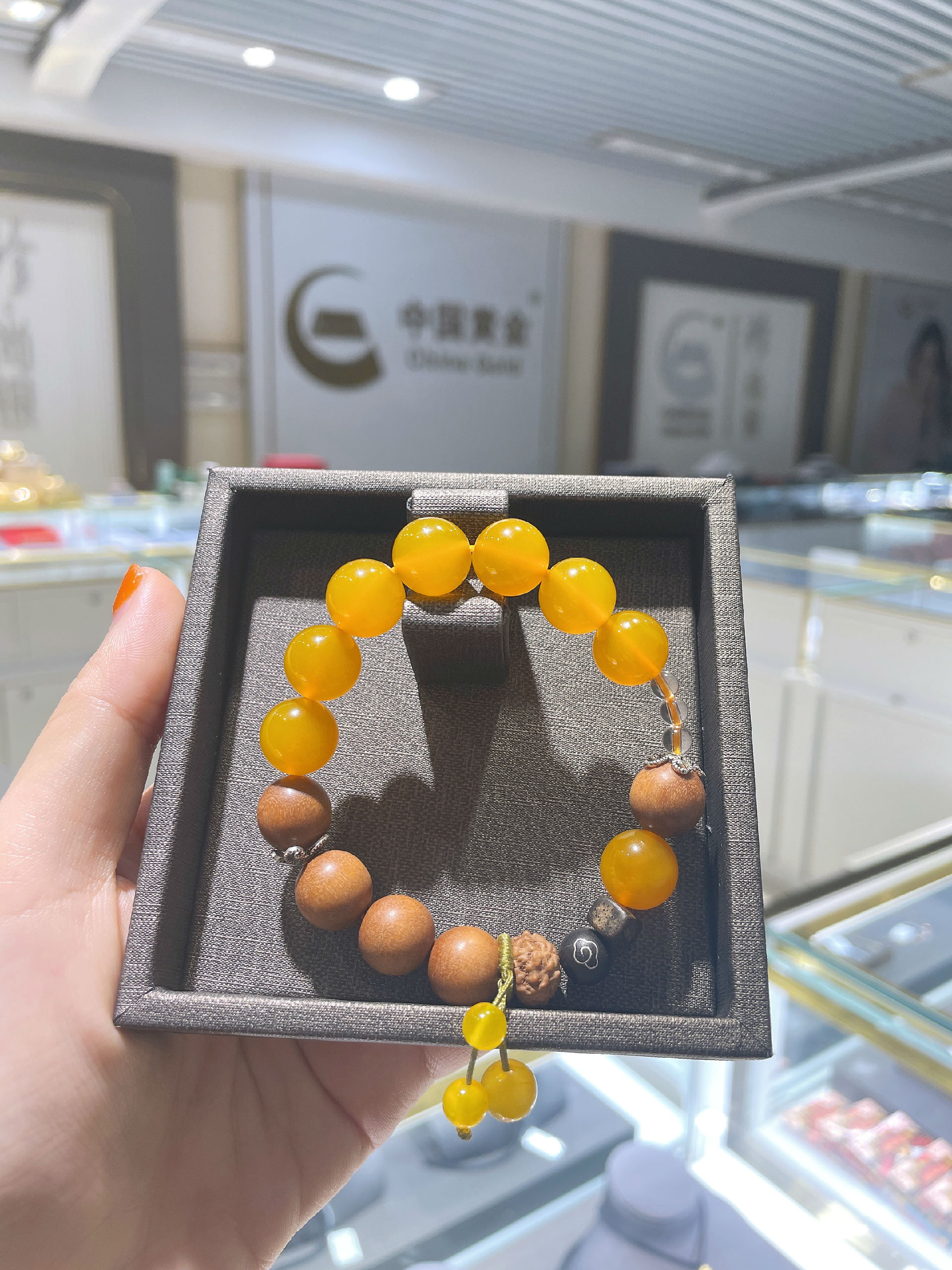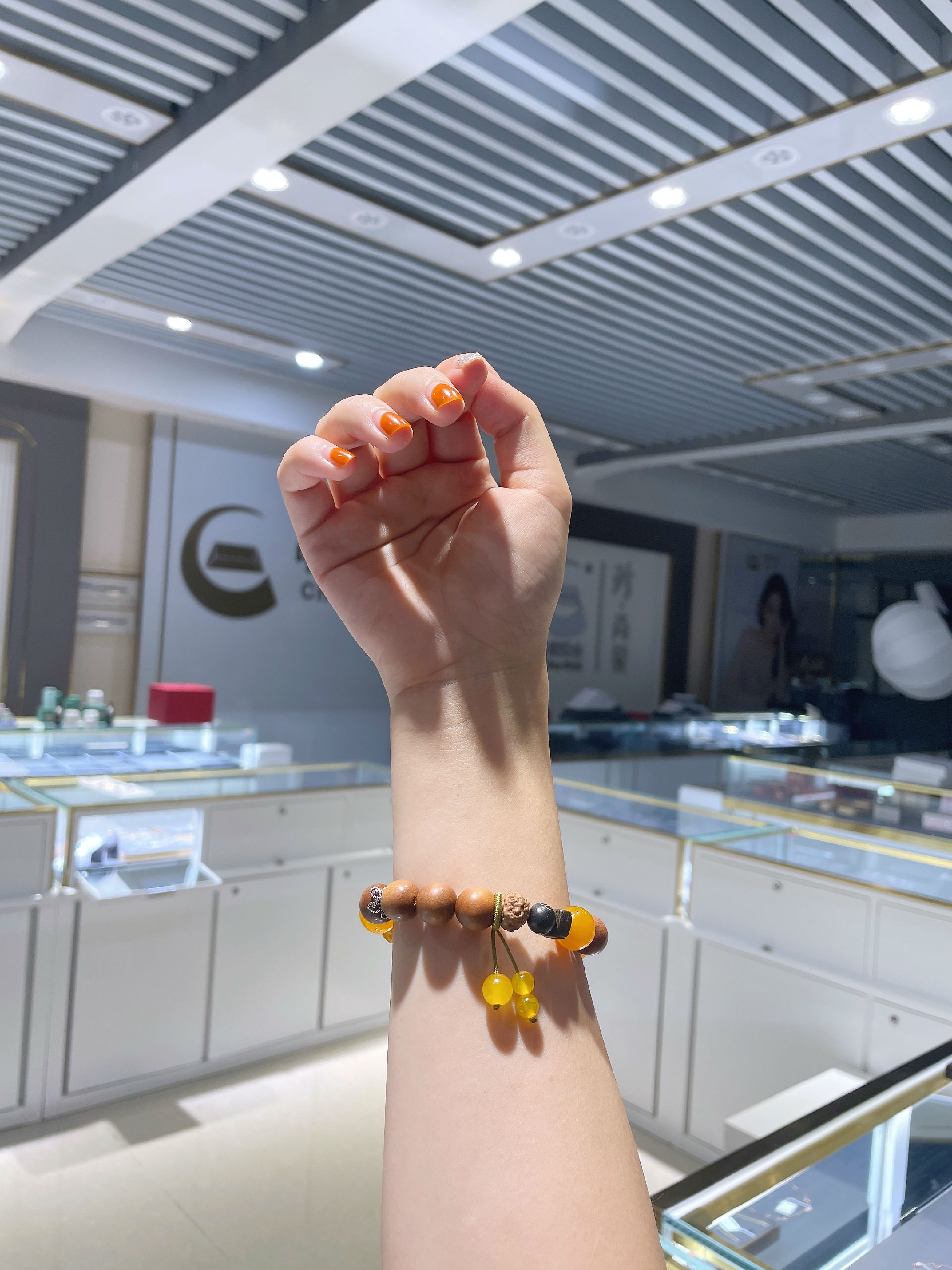 中国黄金 S925银<沉香古色>黄玛瑙檀木手串--SK1858