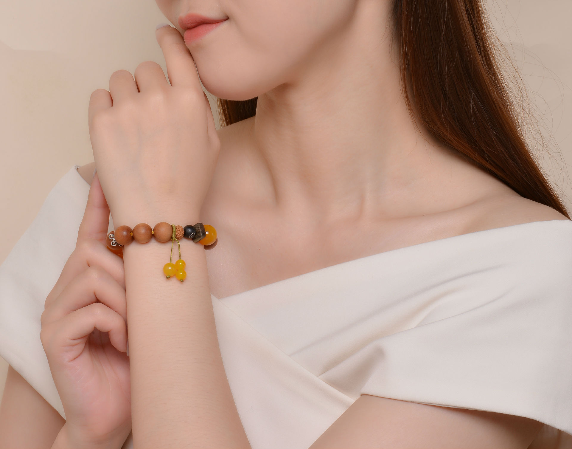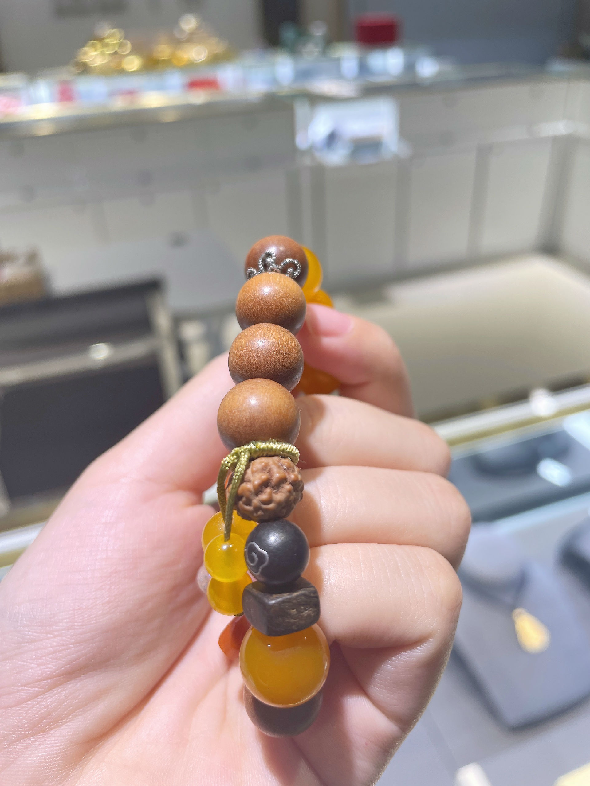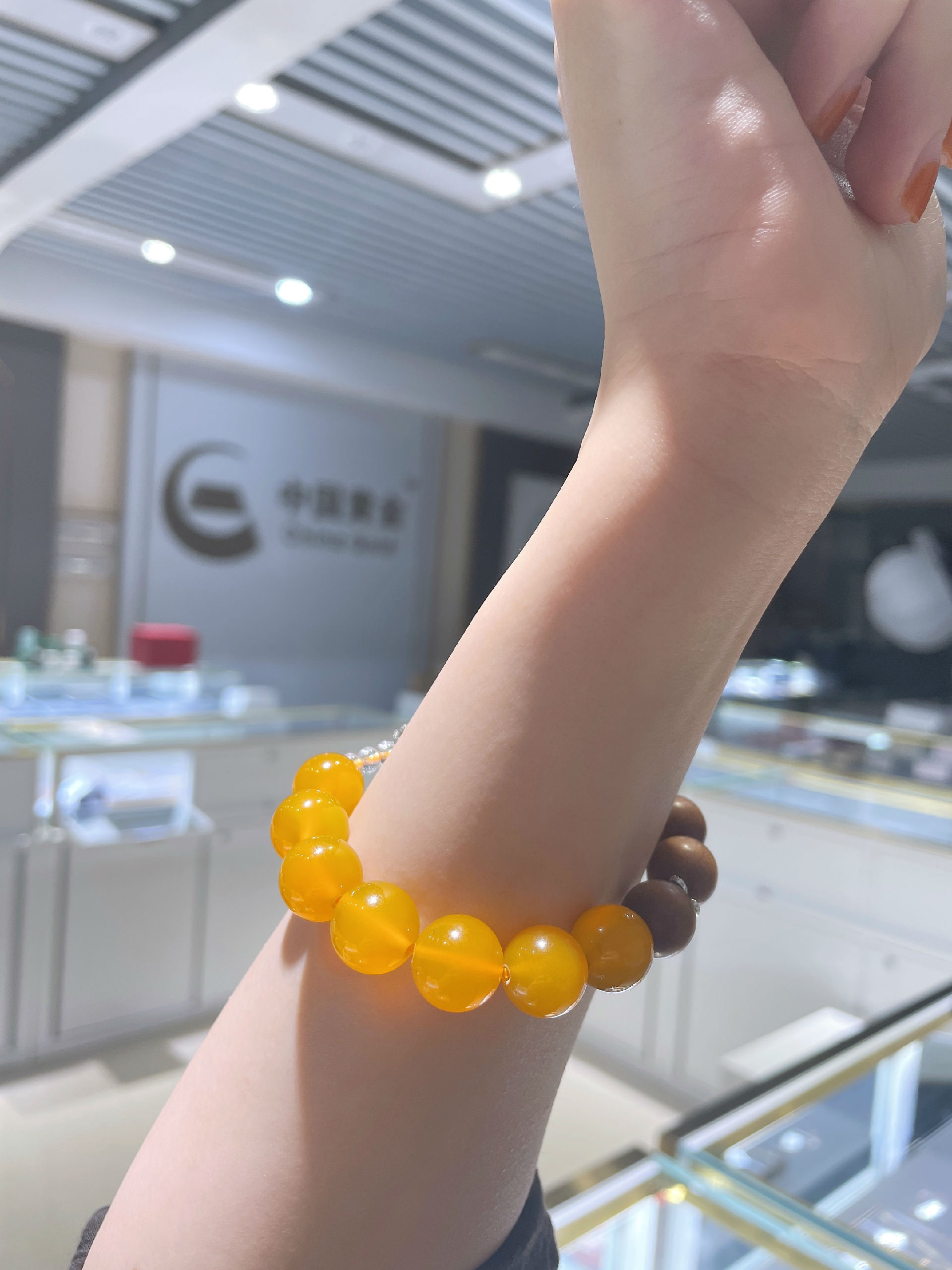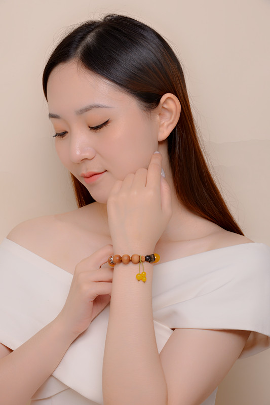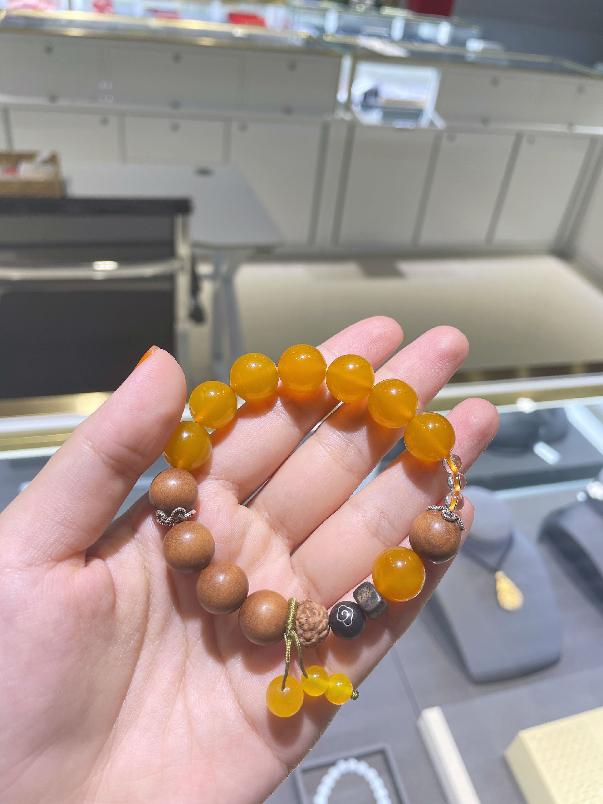中国黄金 S925银<沉香古色>黄玛瑙檀木手串--SK1858