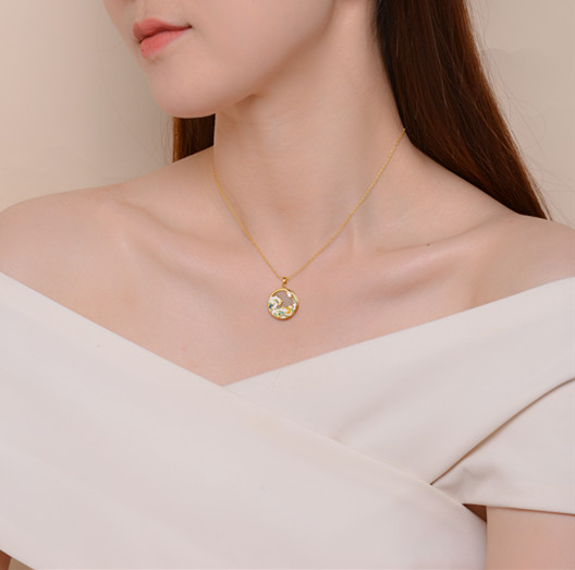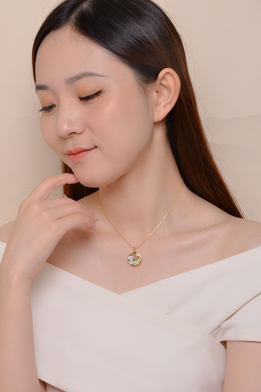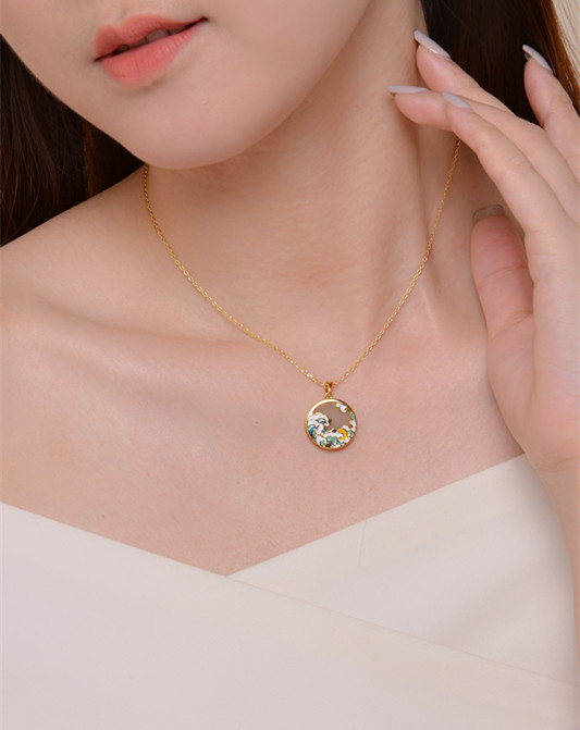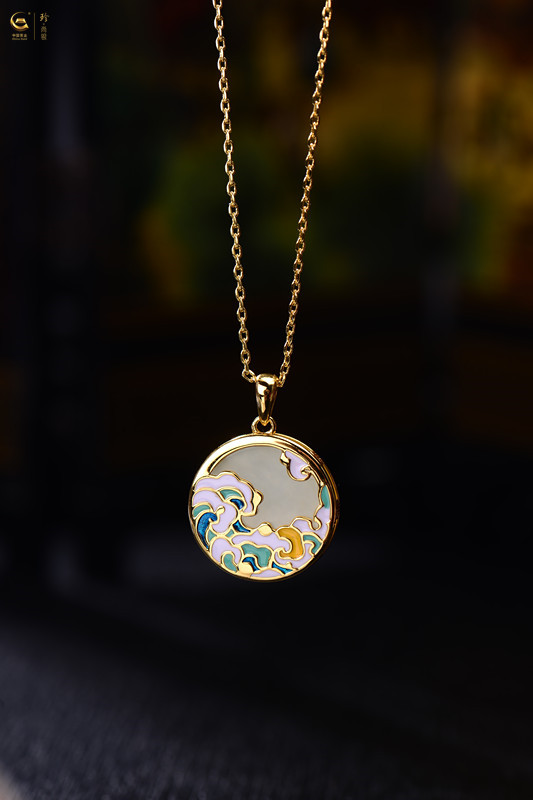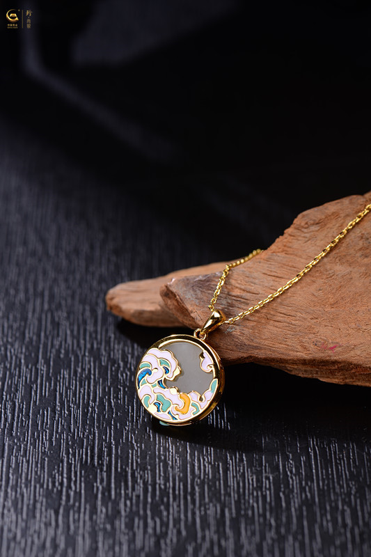 商品名称:中国黄金 天然和田玉<浮世绘>珐琅滴釉项链--SK7221