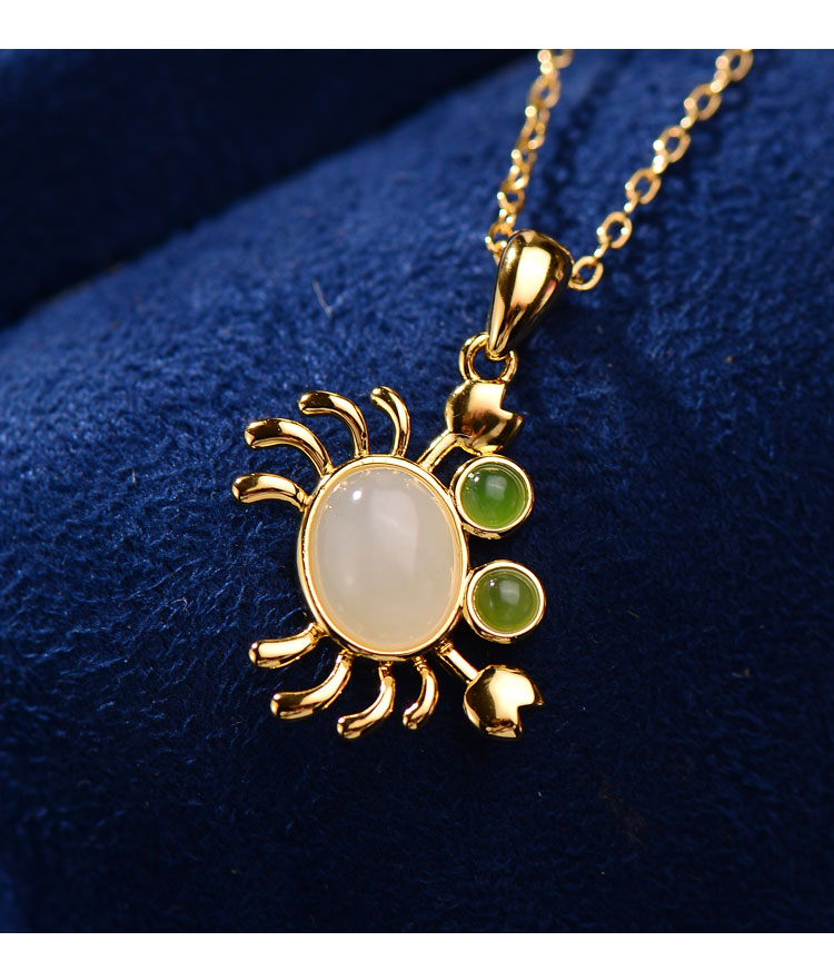 商品名称:中国黄金 天然和田白玉<感“蟹”有你>可爱小螃蟹项链-SK16184