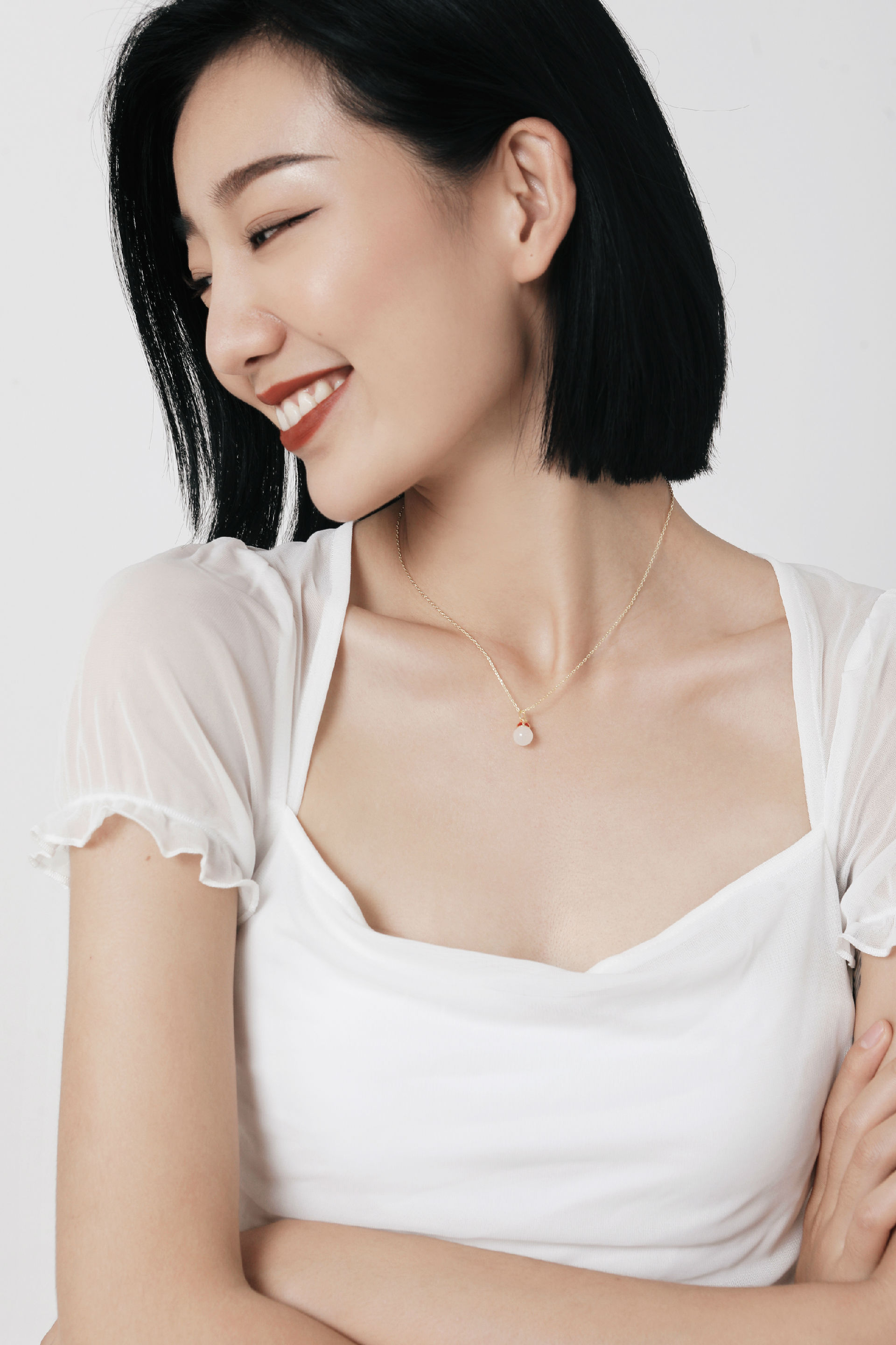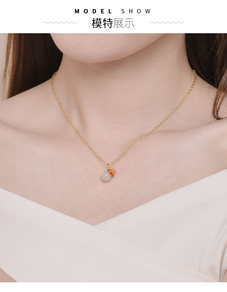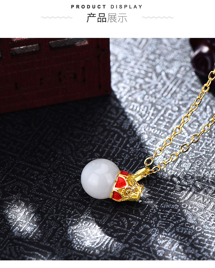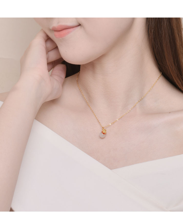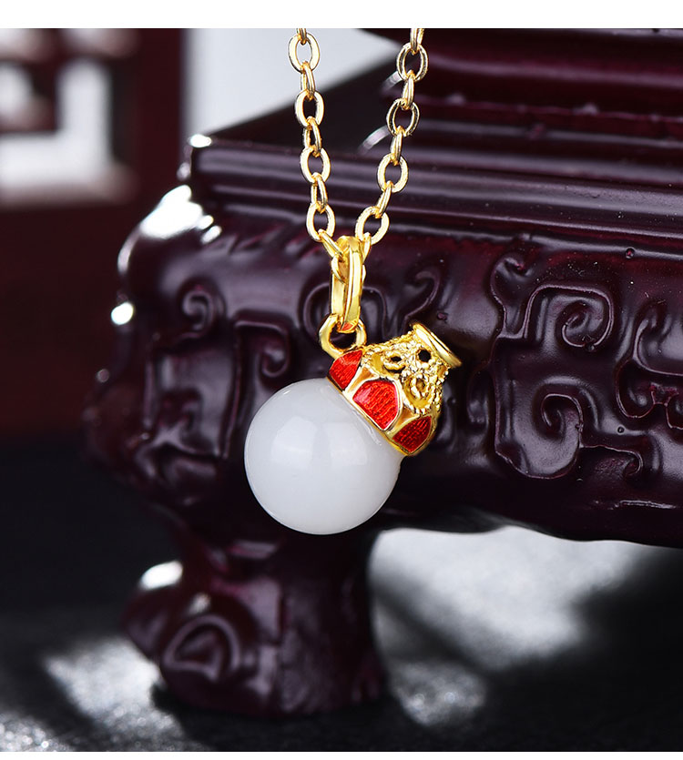 商品名称:中国黄金 天然和田白玉<珐琅小葫芦>宝葫芦项链SK21657