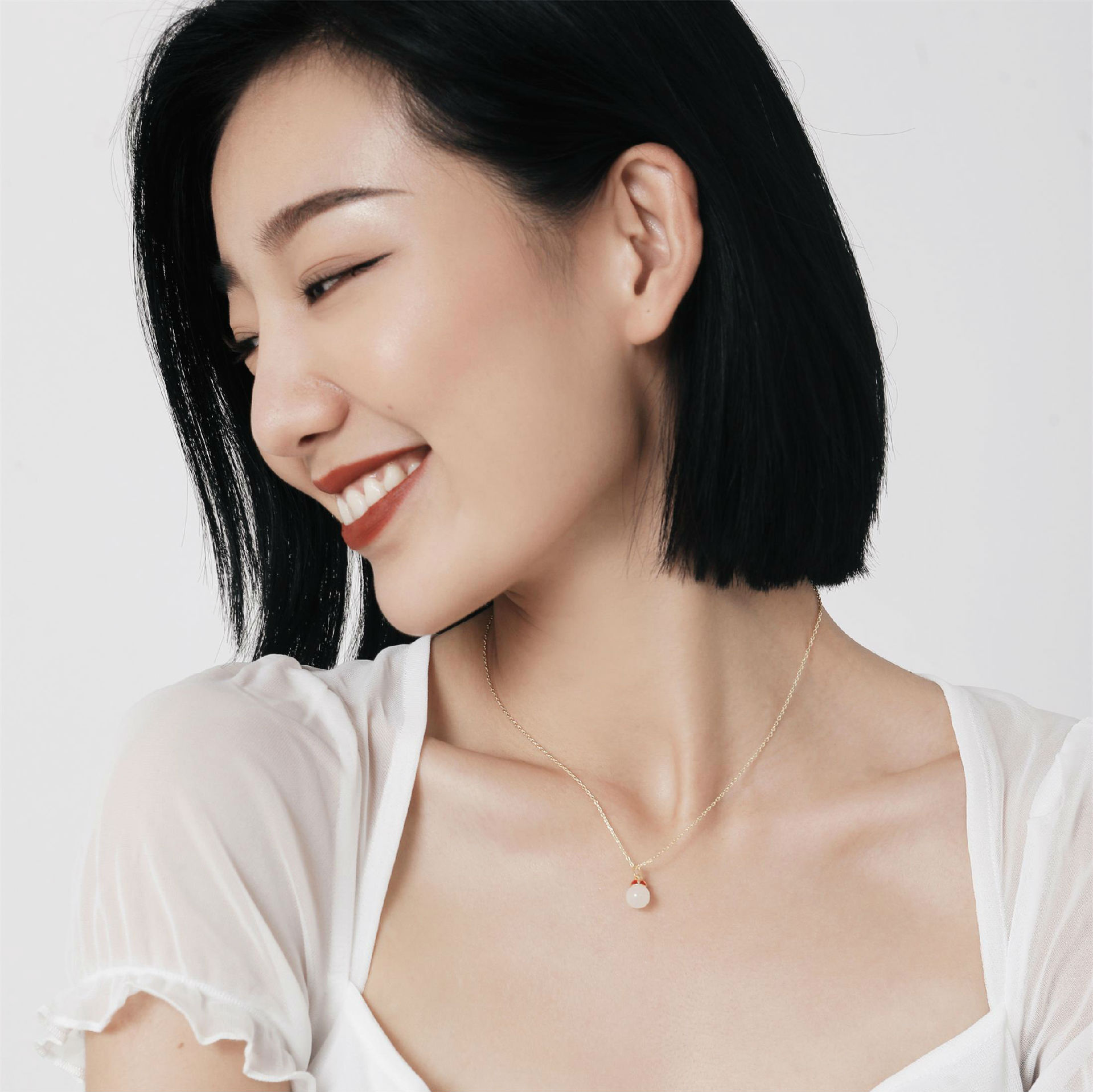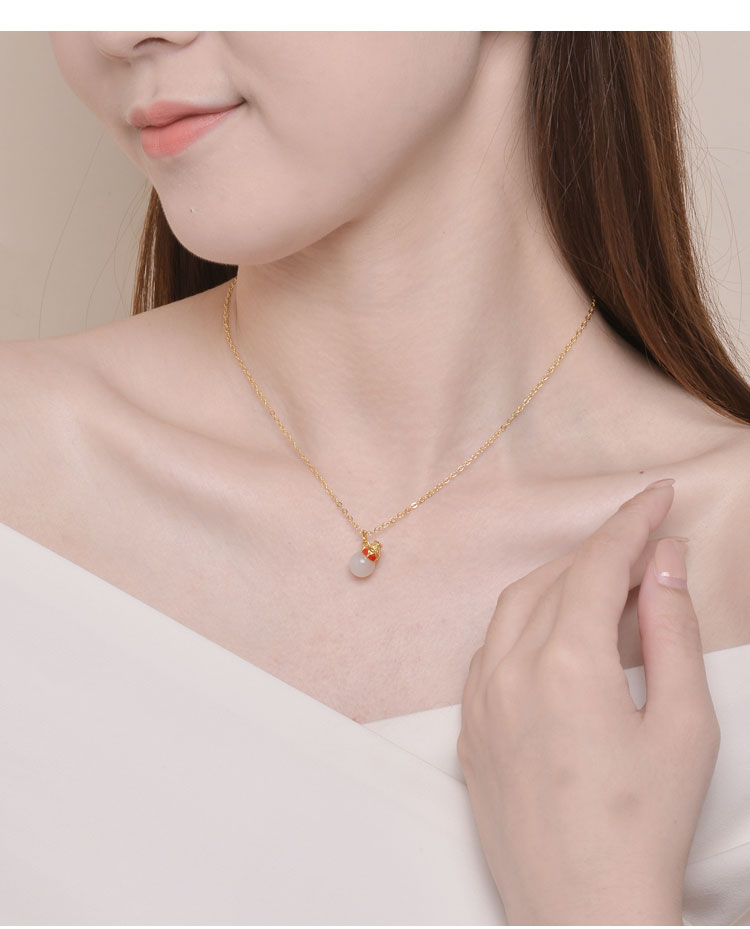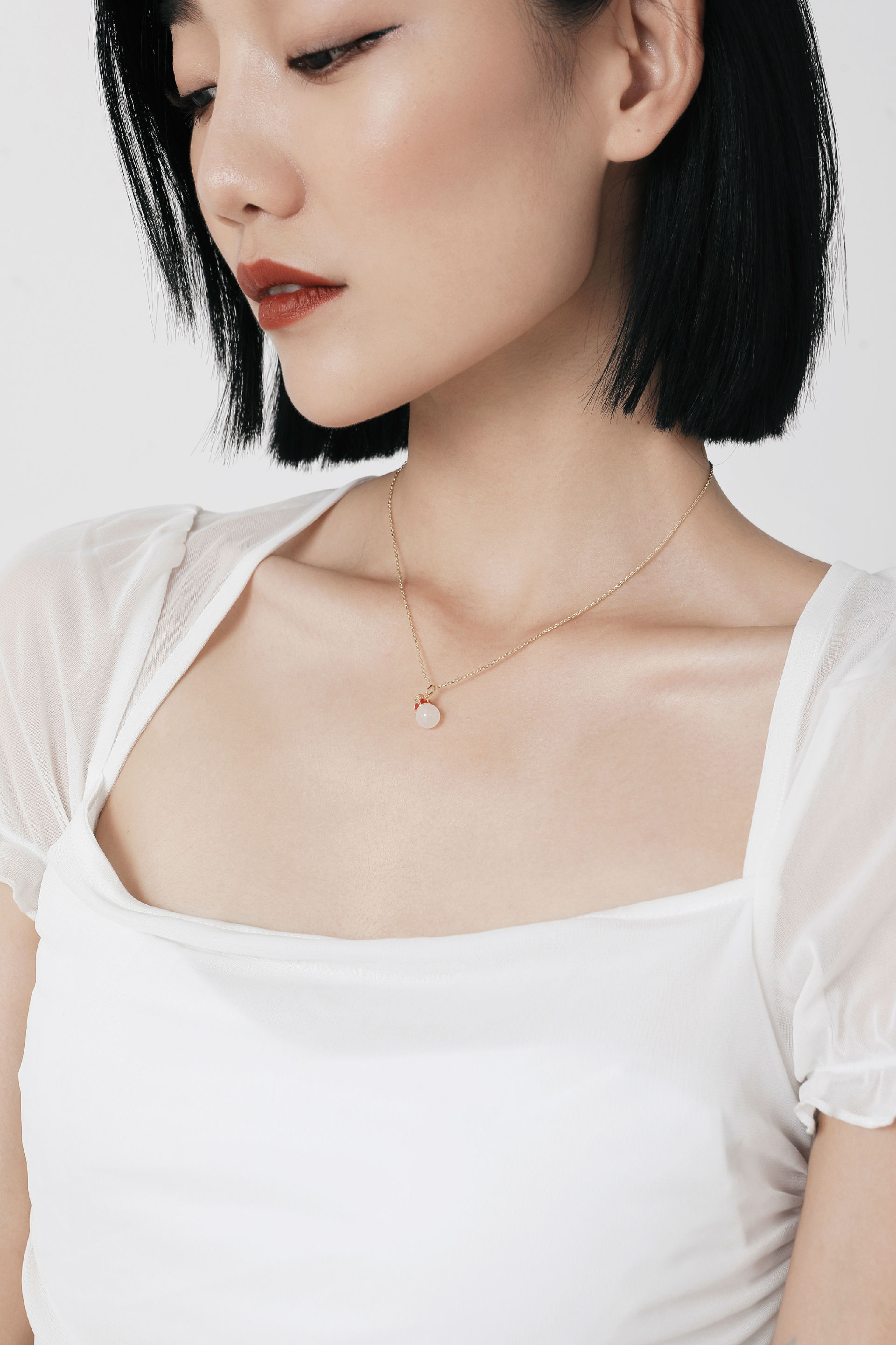 商品名称:中国黄金 天然和田白玉<珐琅小葫芦>宝葫芦项链SK21657
