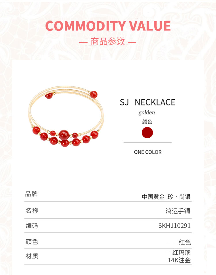 商品名称:中国黄金 红玛瑙经典<鸿运>新款手镯-SKHJ10291