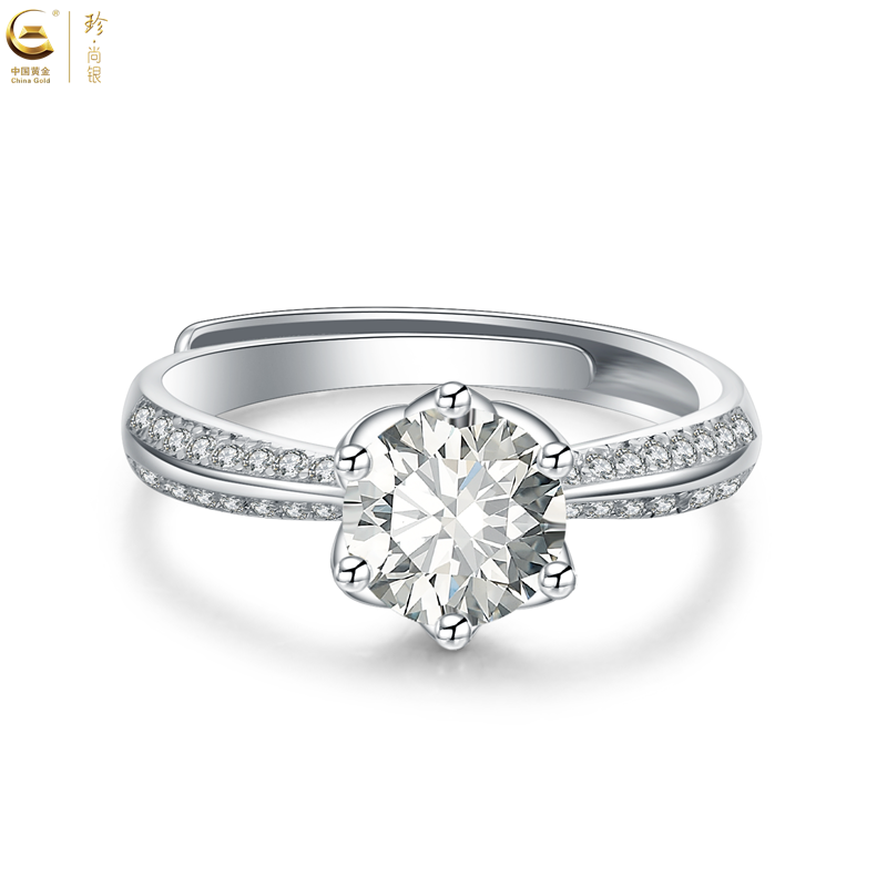 中国黄金 S925银镶一克拉莫桑<半壁江山>戒指-SKSZ14291