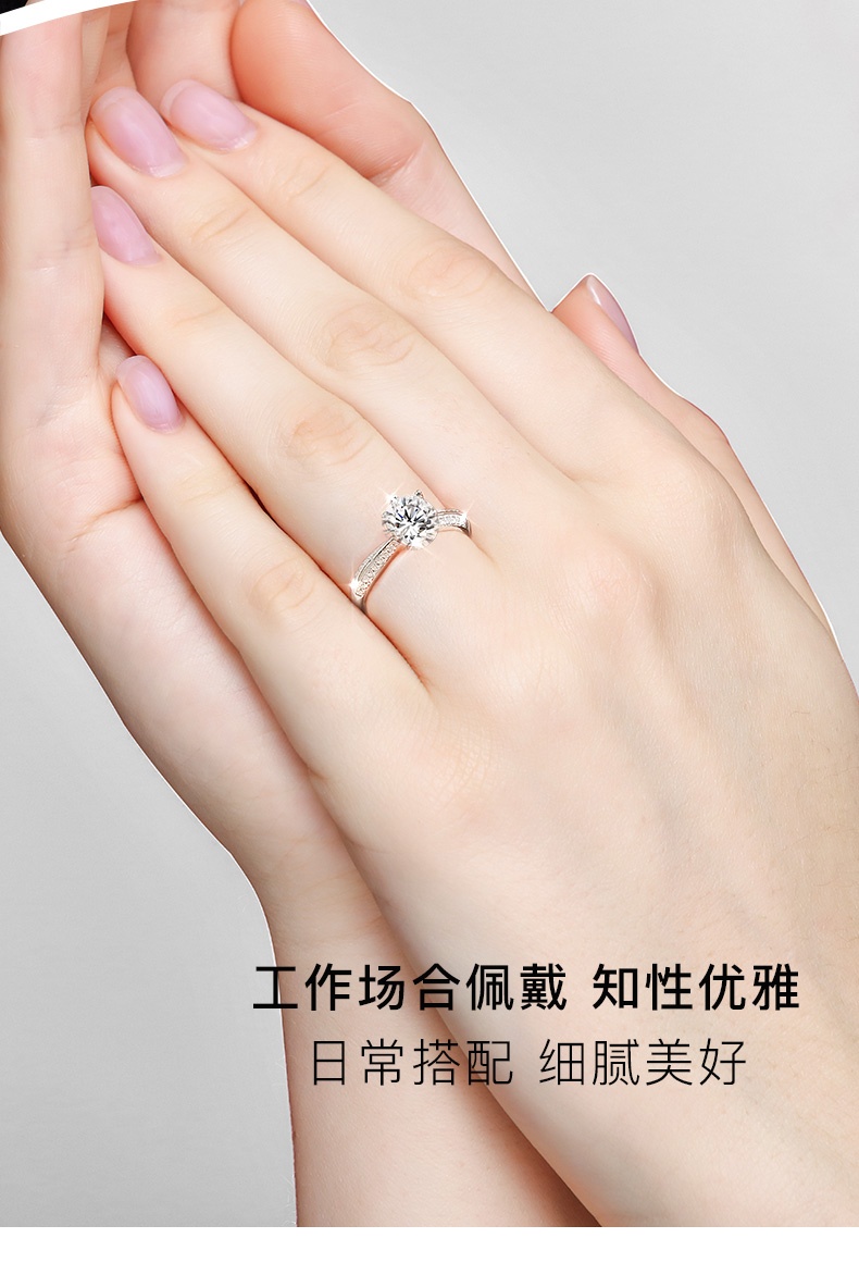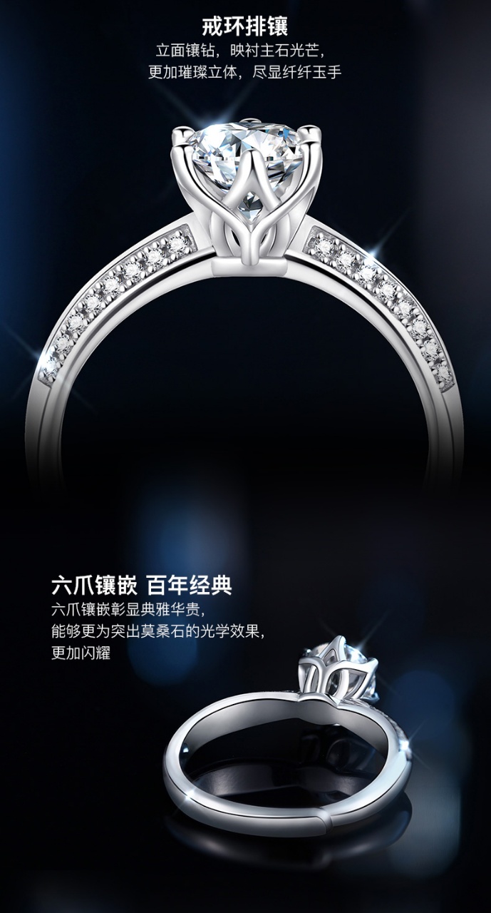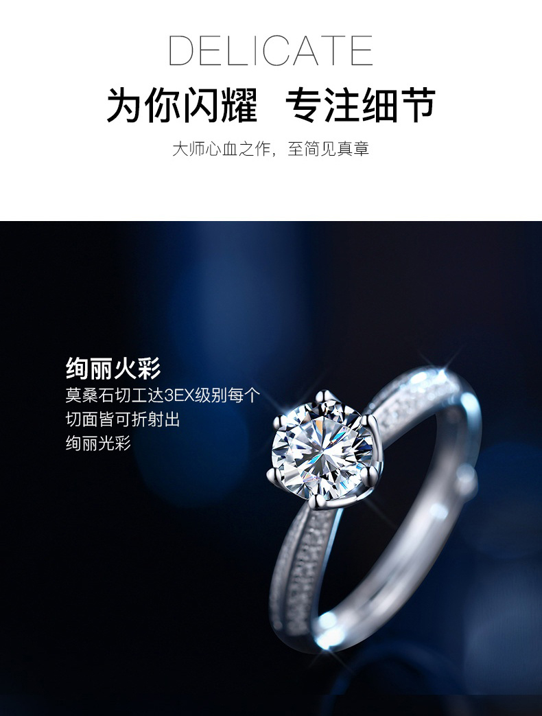 商品名称:中国黄金 S925银镶一克拉莫桑<半壁江山>戒指-SKSZ14291