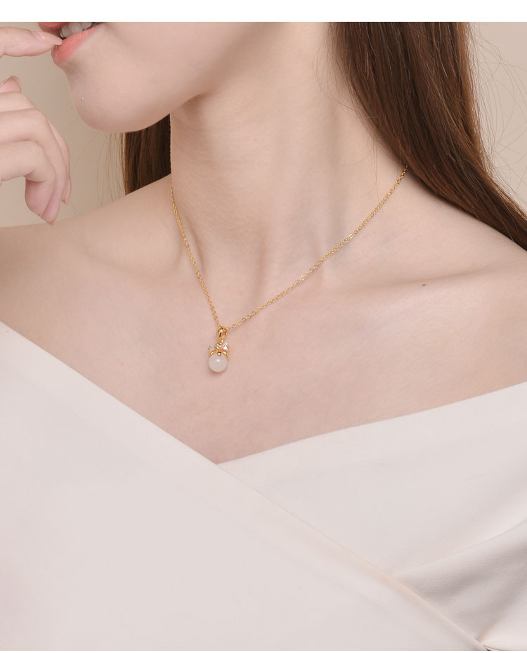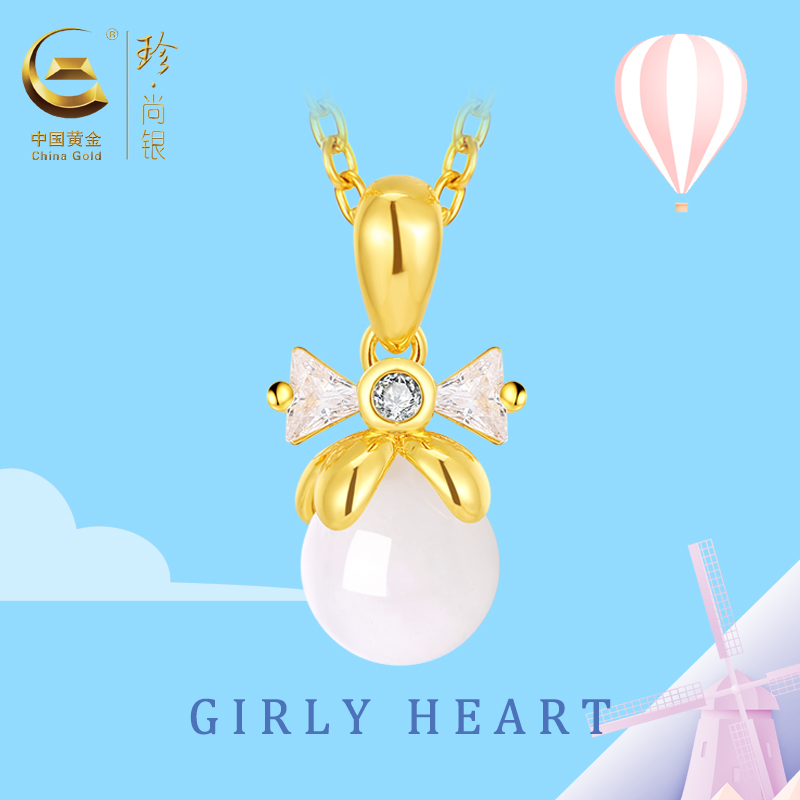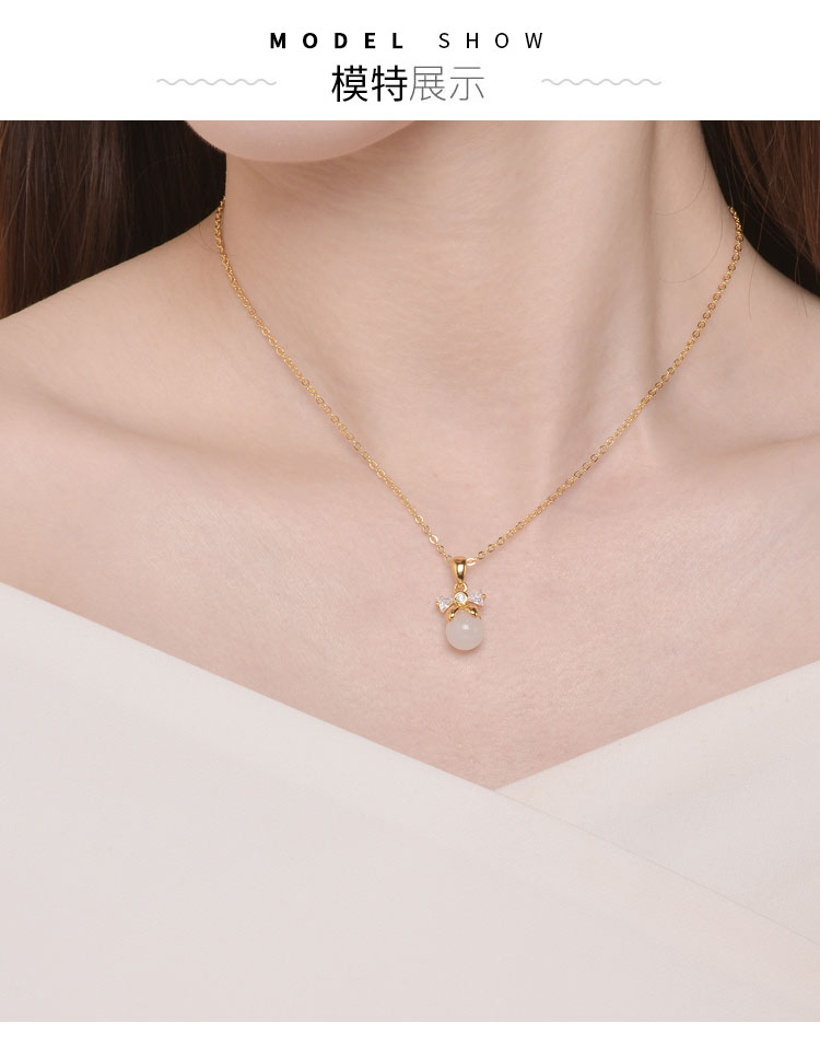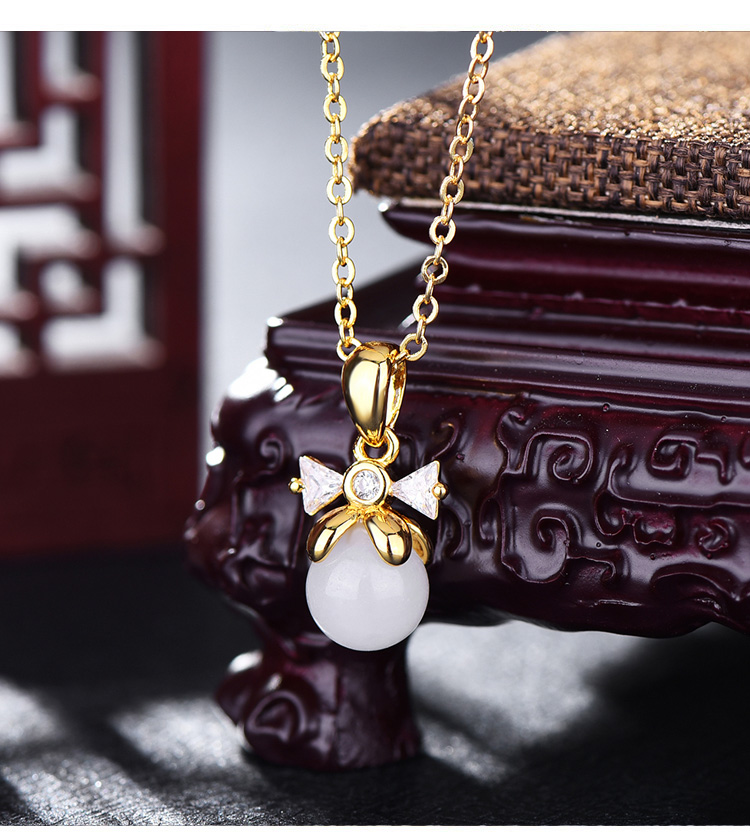 商品名称:中国黄金 天然和田白玉<少女心>蝴蝶结项链-SK21651