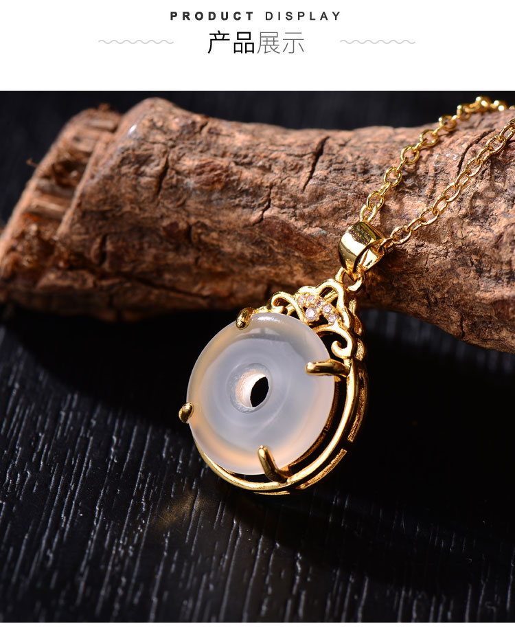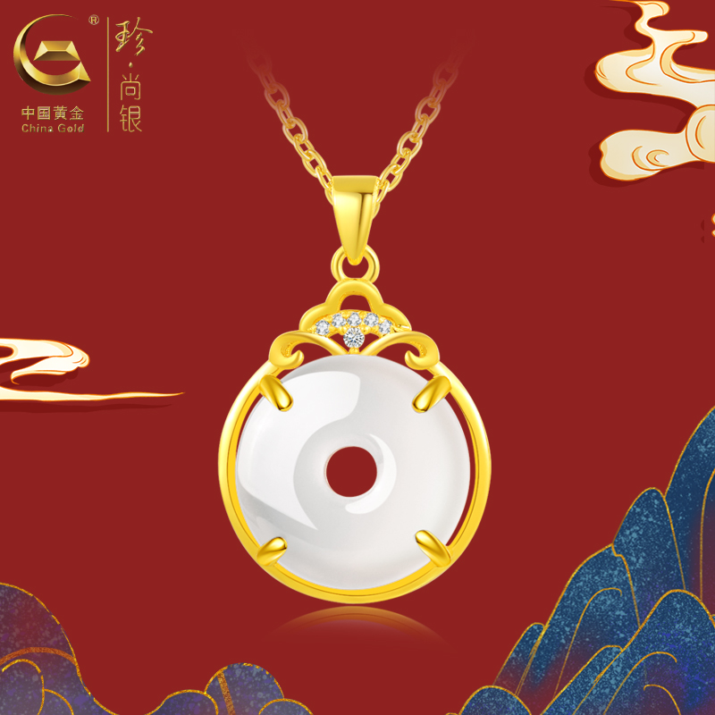中国黄金 天然高冰冰透玉髓<顺安>mini平安扣项链-SK15312