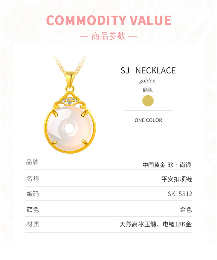 商品名称:中国黄金 天然高冰冰透玉髓<顺安>mini平安扣项链-SK15312