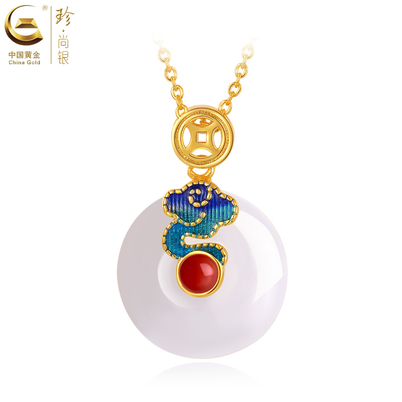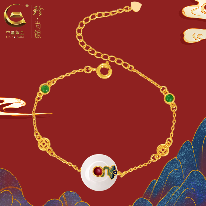 中国黄金 天然和田白玉珐琅<祥云>平安扣手链SK7111