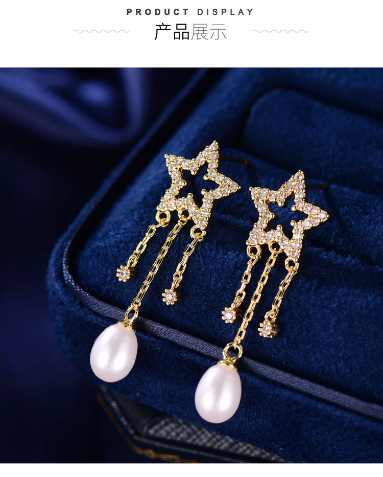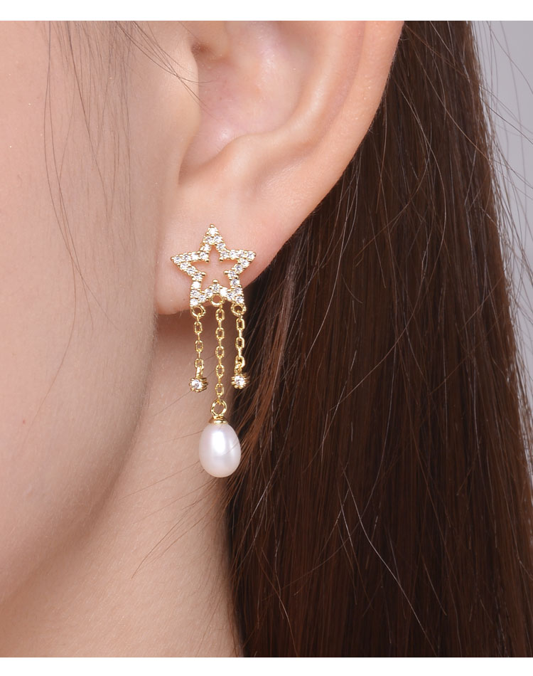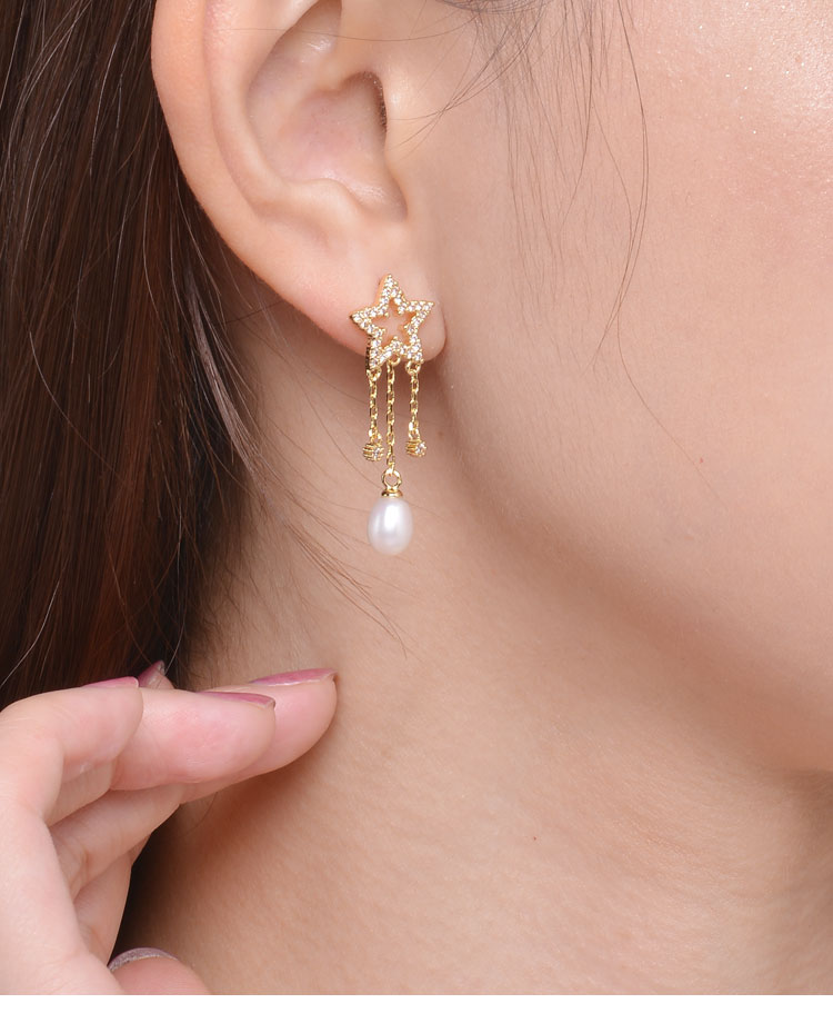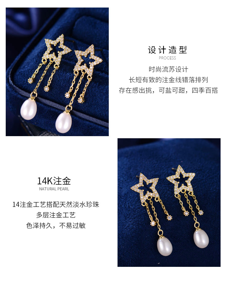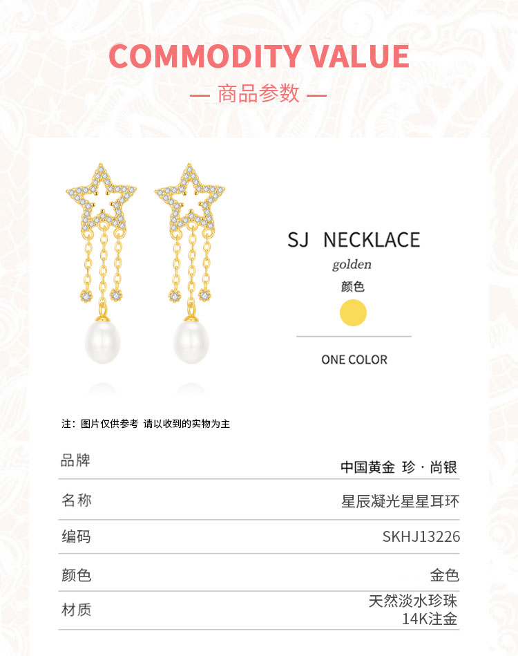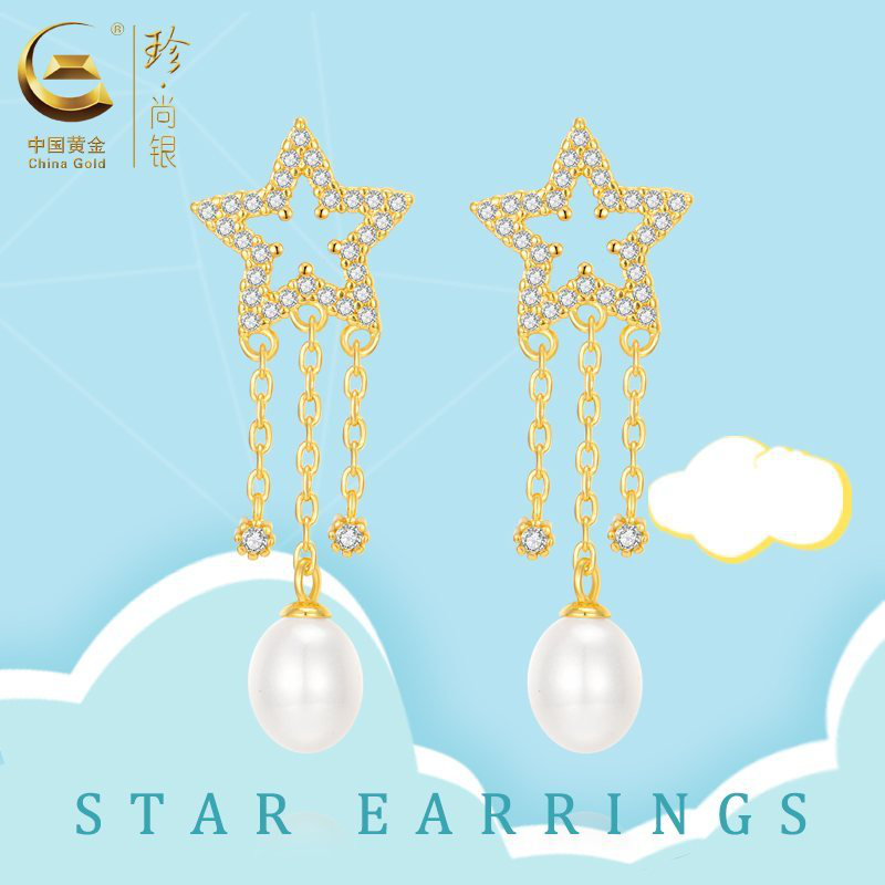 商品名称:中国黄金 天然淡水珍珠<星辰凝光>星星耳环-SKHJ13226