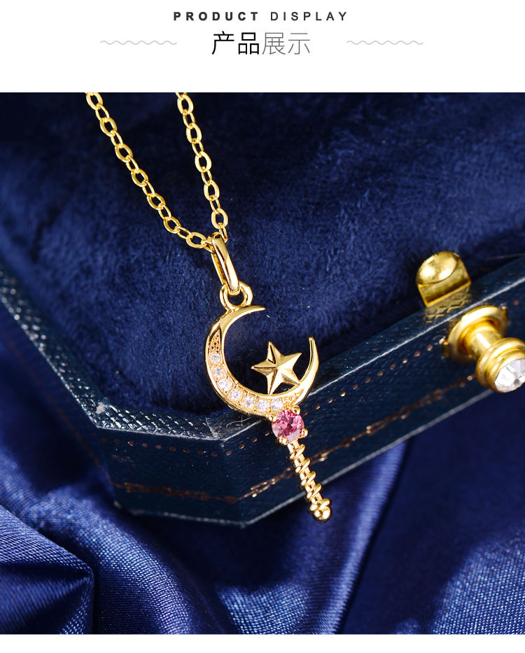 商品名称:中国黄金 天然石榴石<星月礼>浪漫魔法棒项链-SK16196