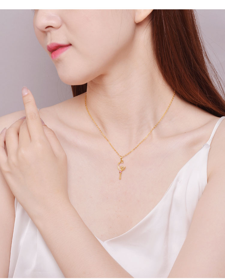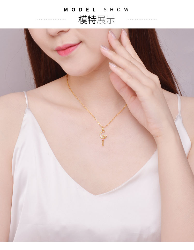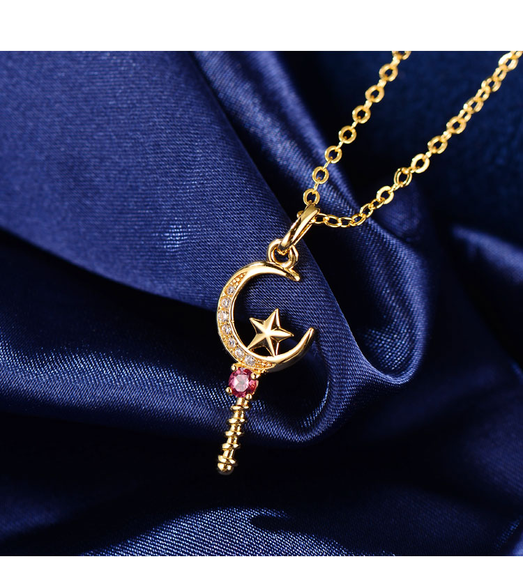 中国黄金 天然石榴石<星月礼>浪漫魔法棒项链-SK16196