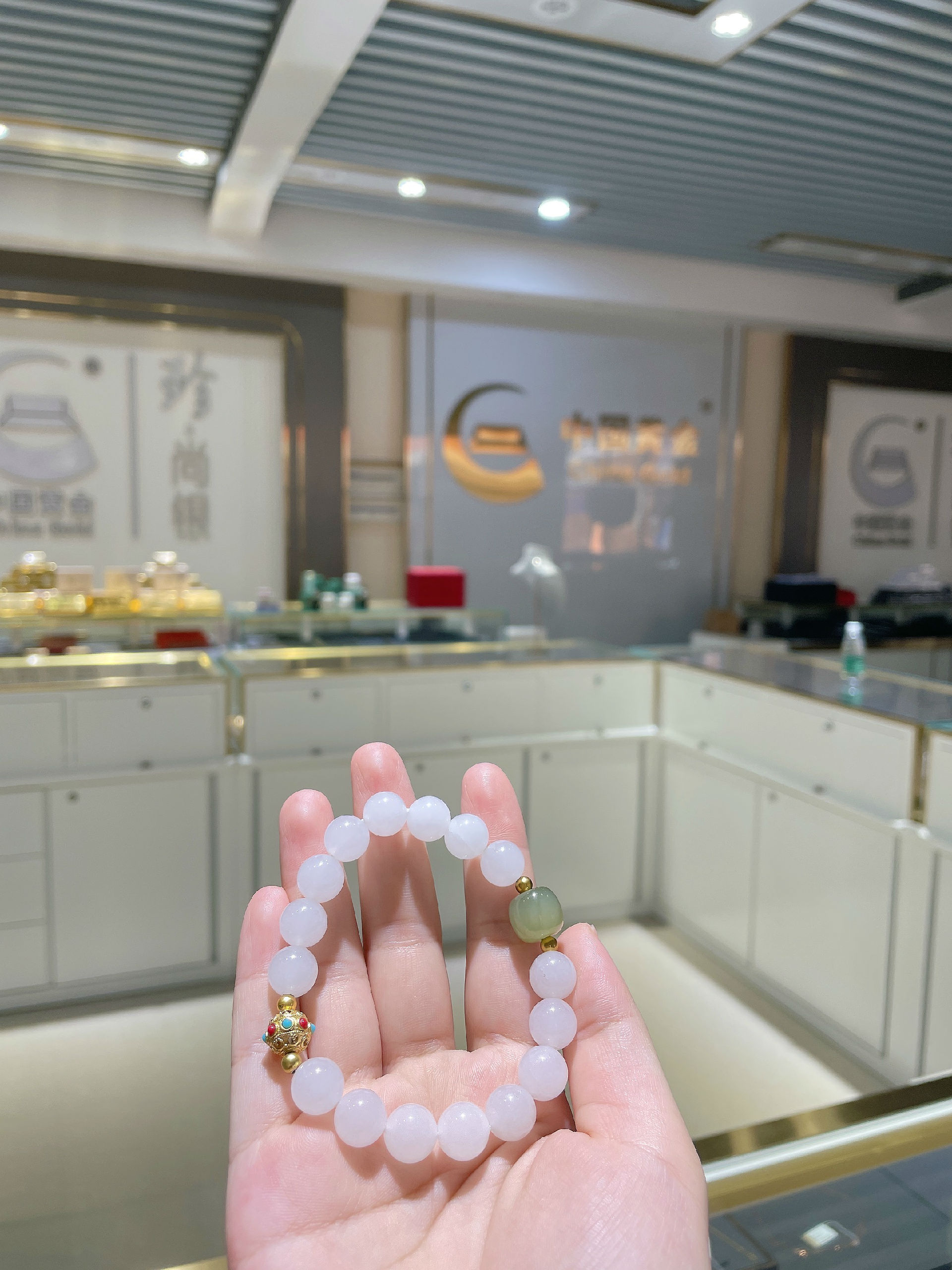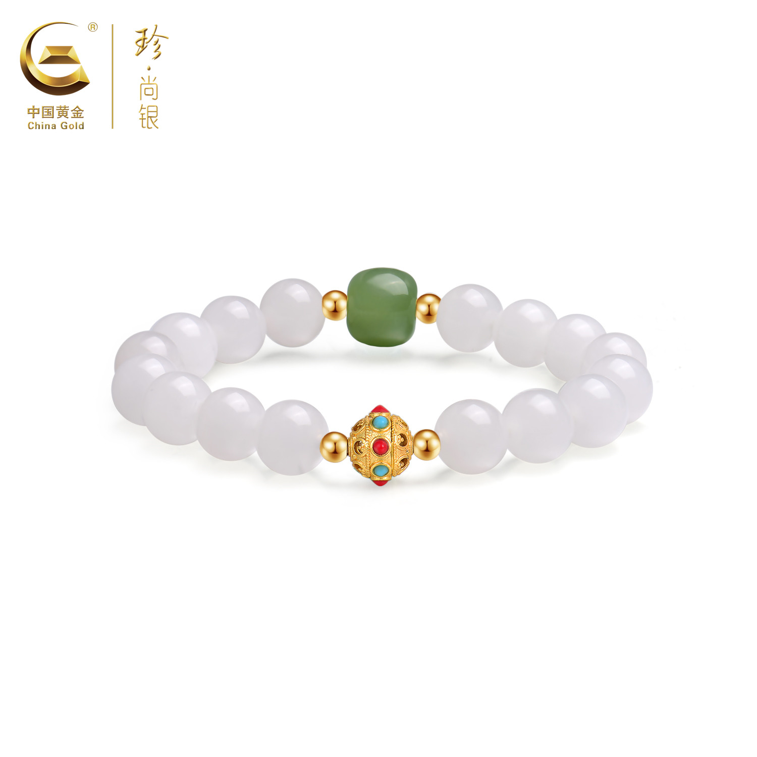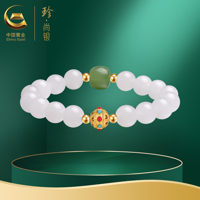 中国黄金 天然碧玉金丝玉<雪之精灵>圆珠手串--SK1916