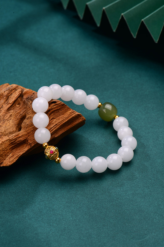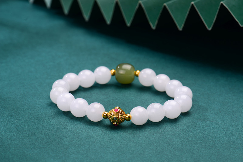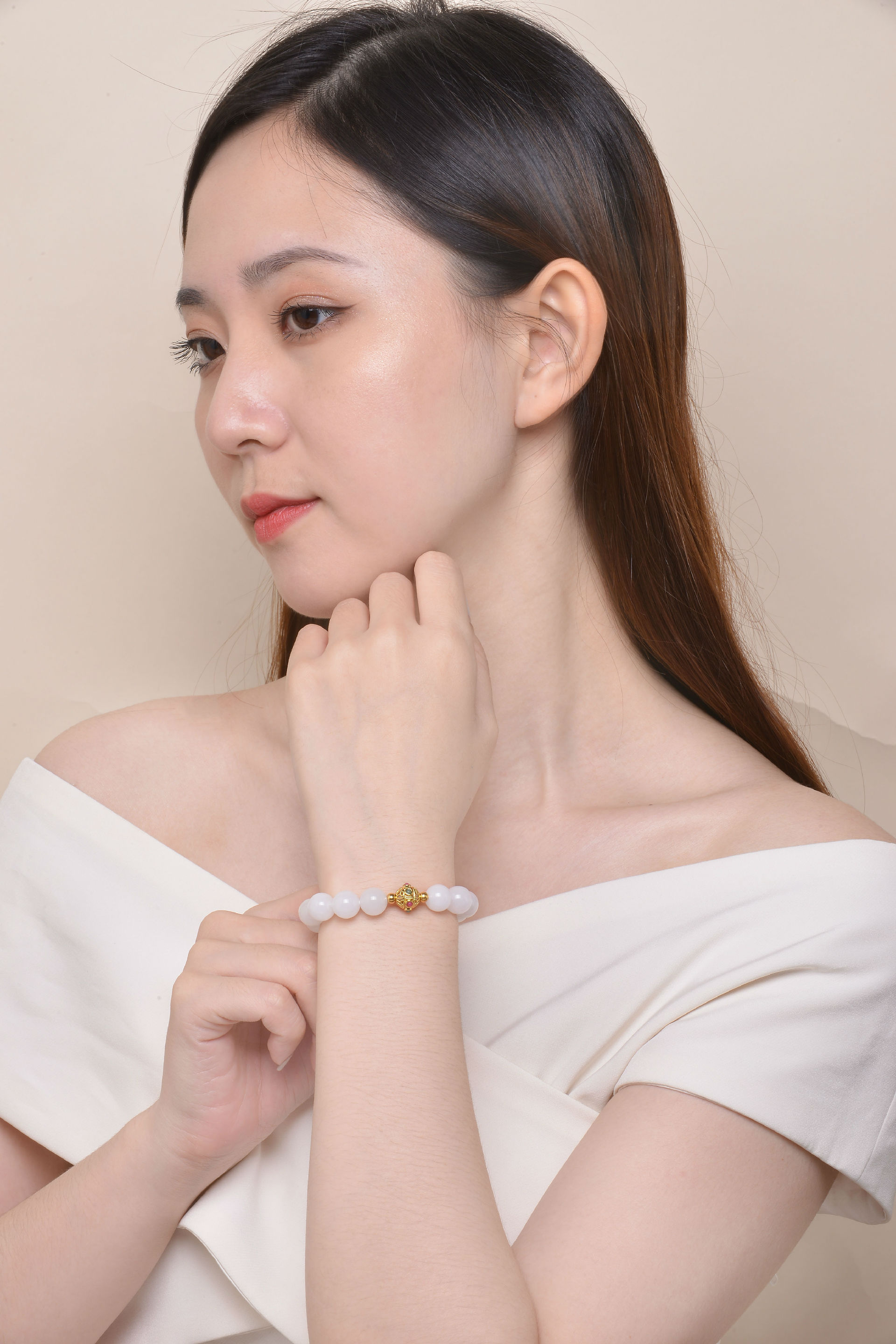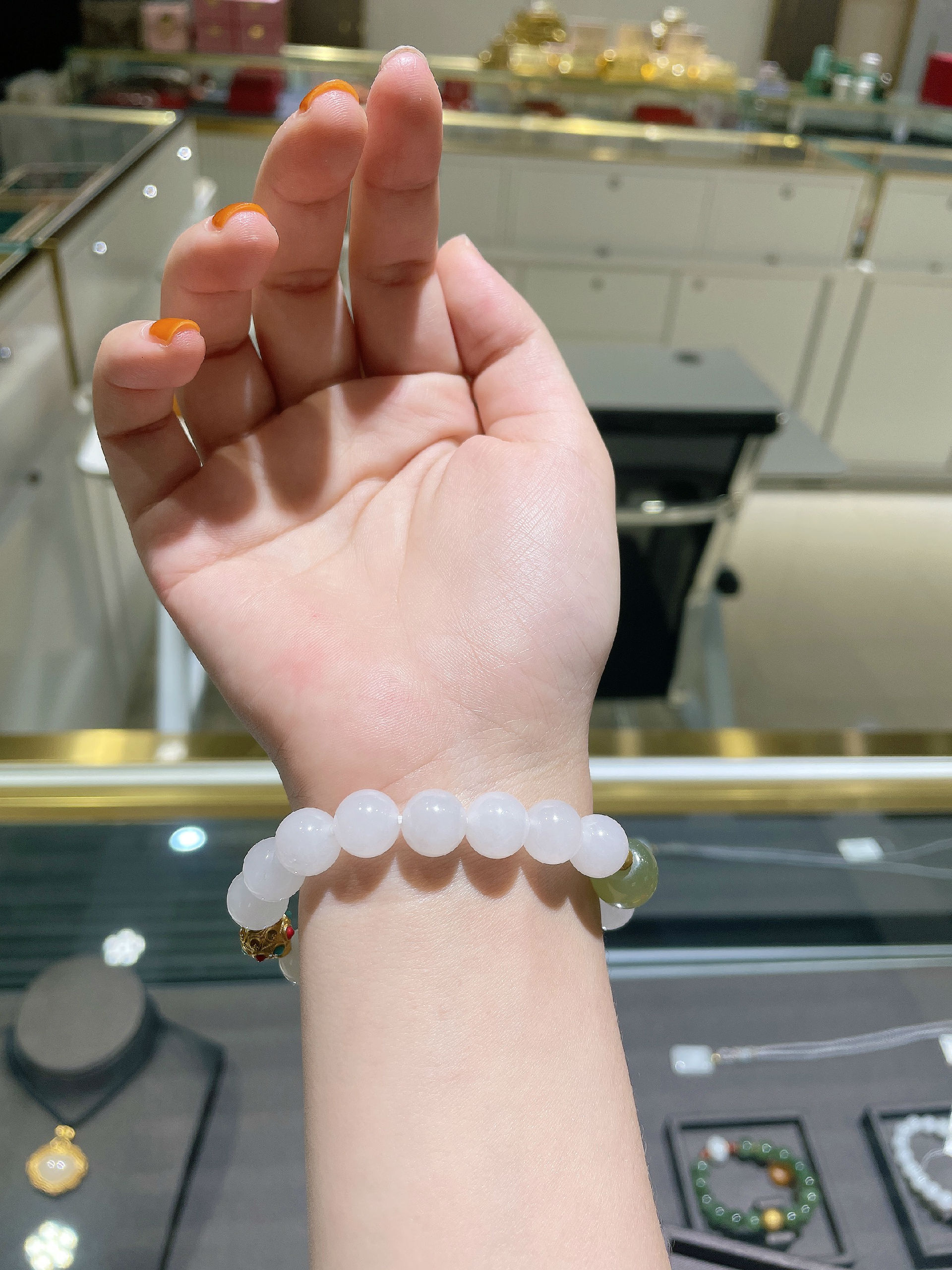 中国黄金 天然碧玉金丝玉<雪之精灵>圆珠手串--SK1916