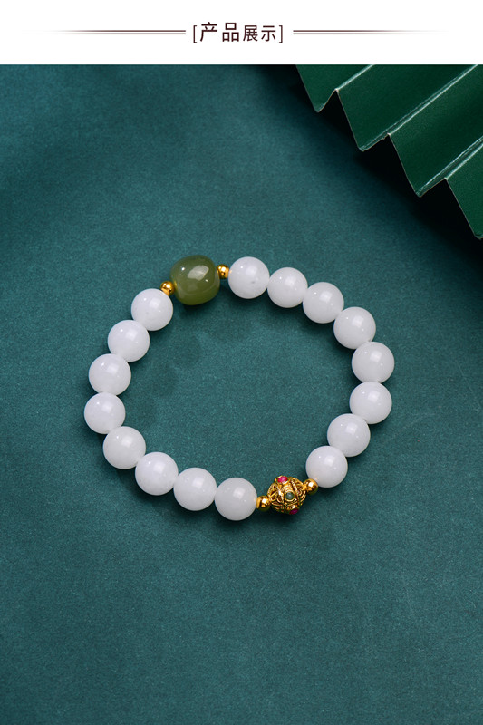 商品名称:中国黄金 天然碧玉金丝玉<雪之精灵>圆珠手串--SK1916