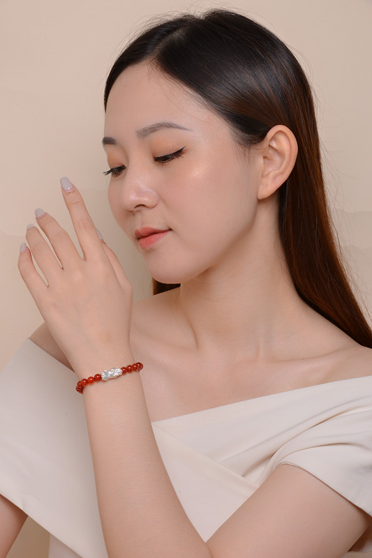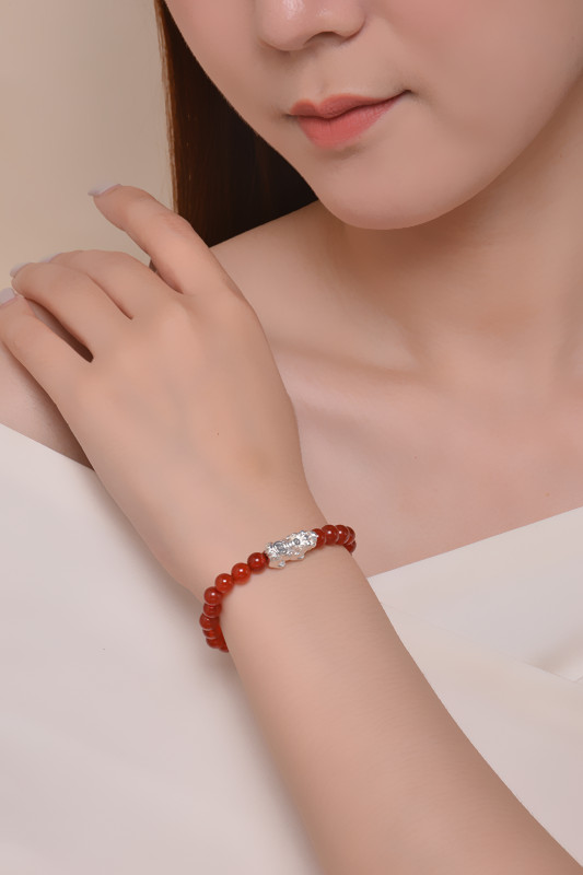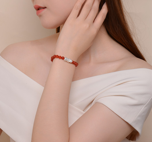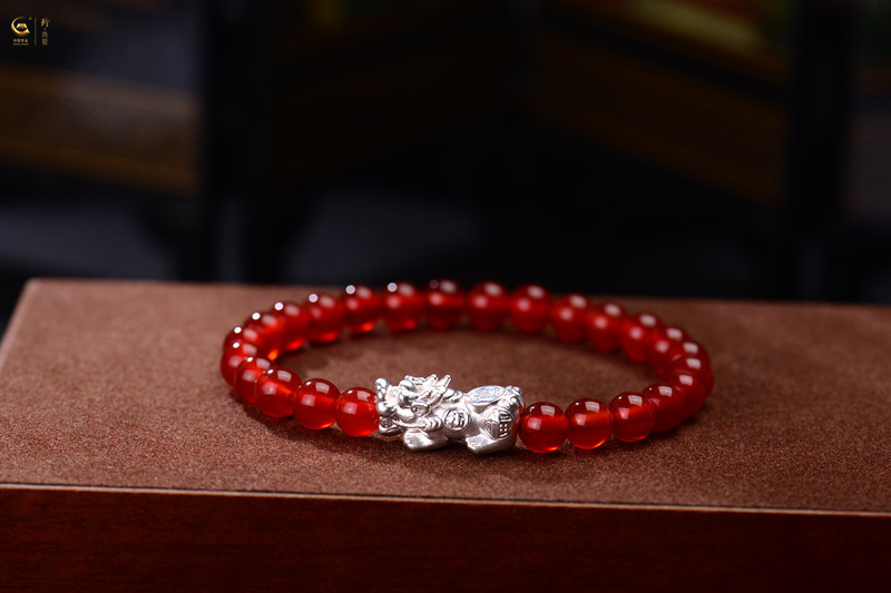 商品名称:中国黄金 S990足银貔貅<迎福貔貅>红玛瑙手串--SK18271