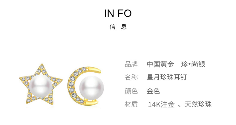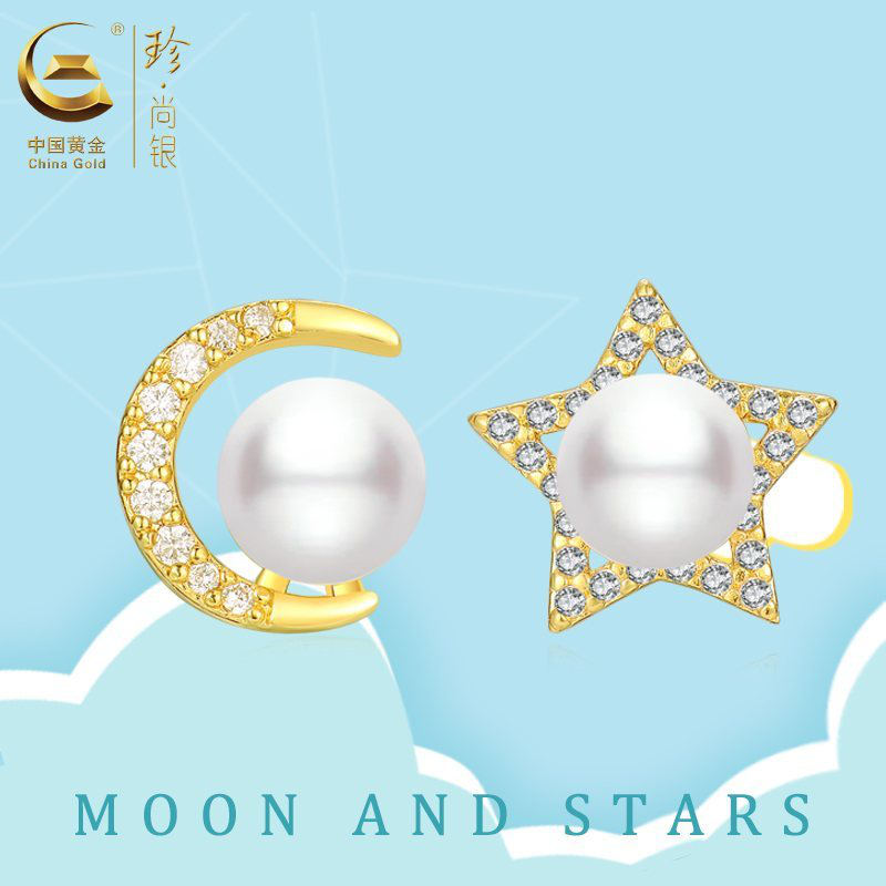 中国黄金 14K注金镶天然淡水珍珠<星月神话>耳饰SKHJ0029