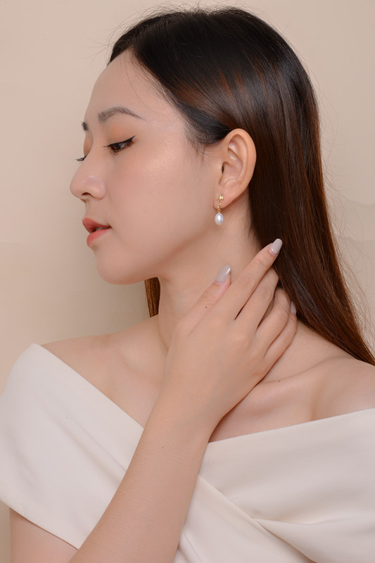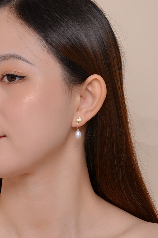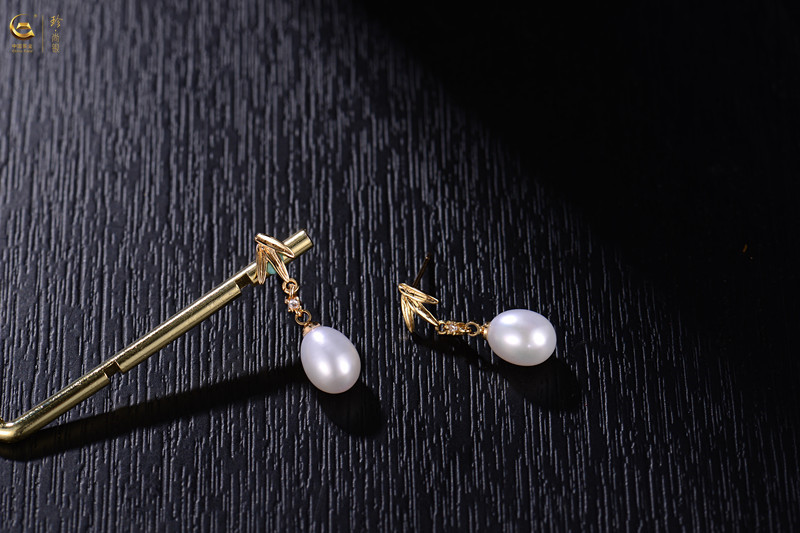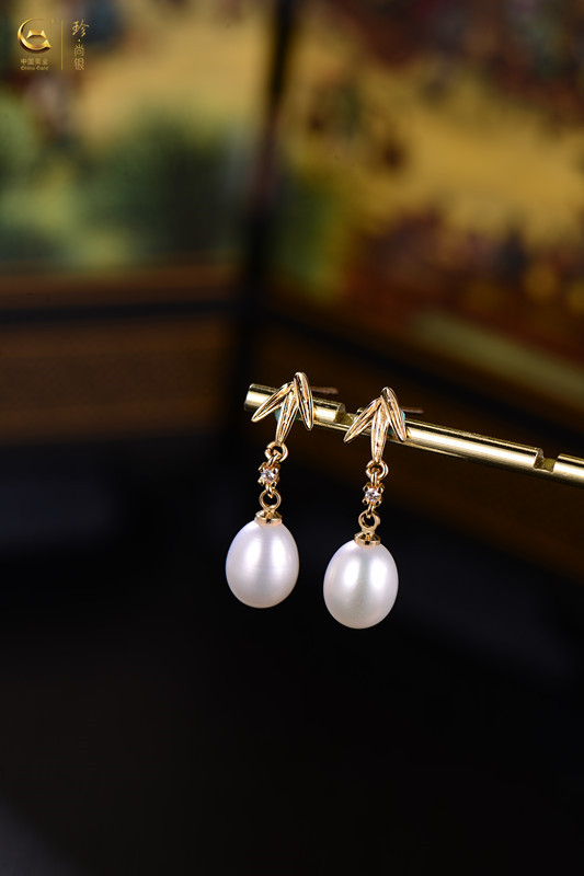 商品名称:中国黄金 天然淡水珍珠<竹月影>竹叶耳环--SK7223