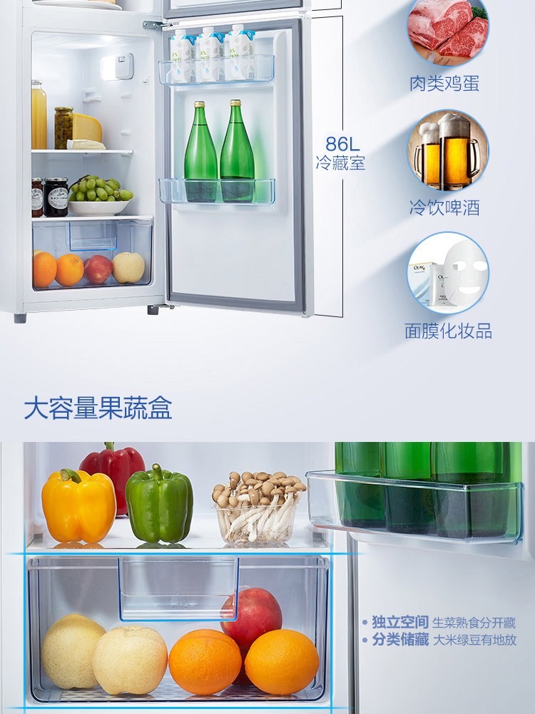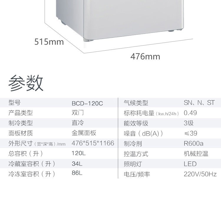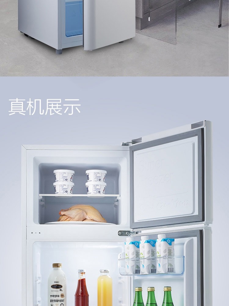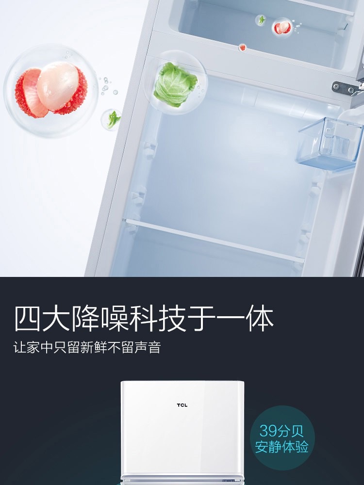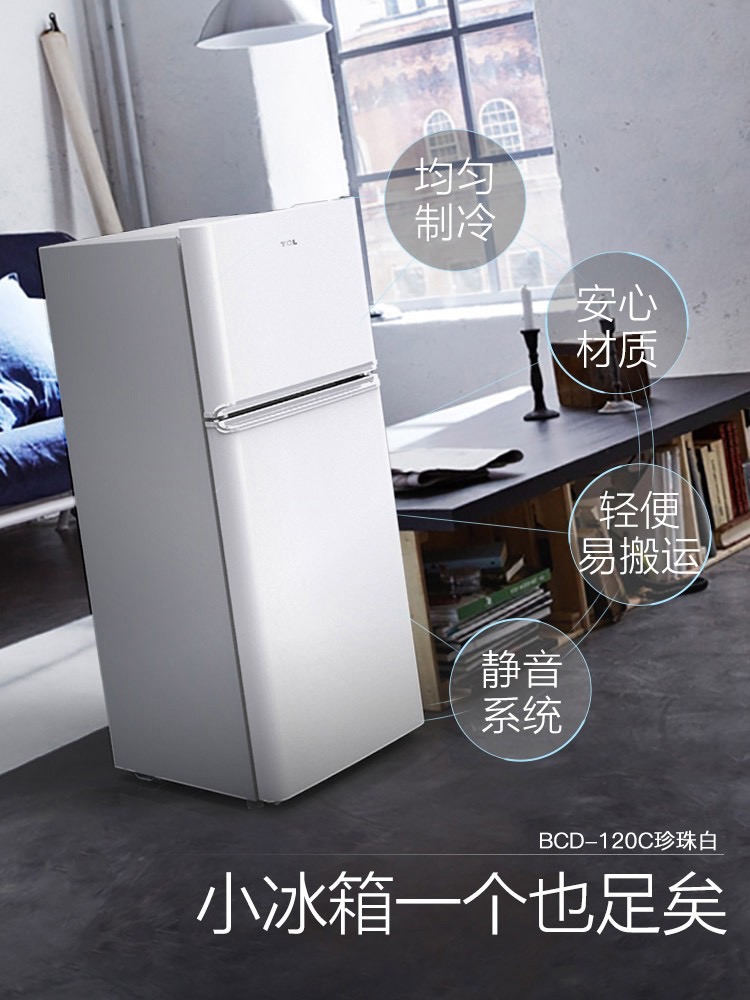 商品名称:TCL 120升 节能养鲜家用 双门冰箱 小家用BCD-120C珍珠白