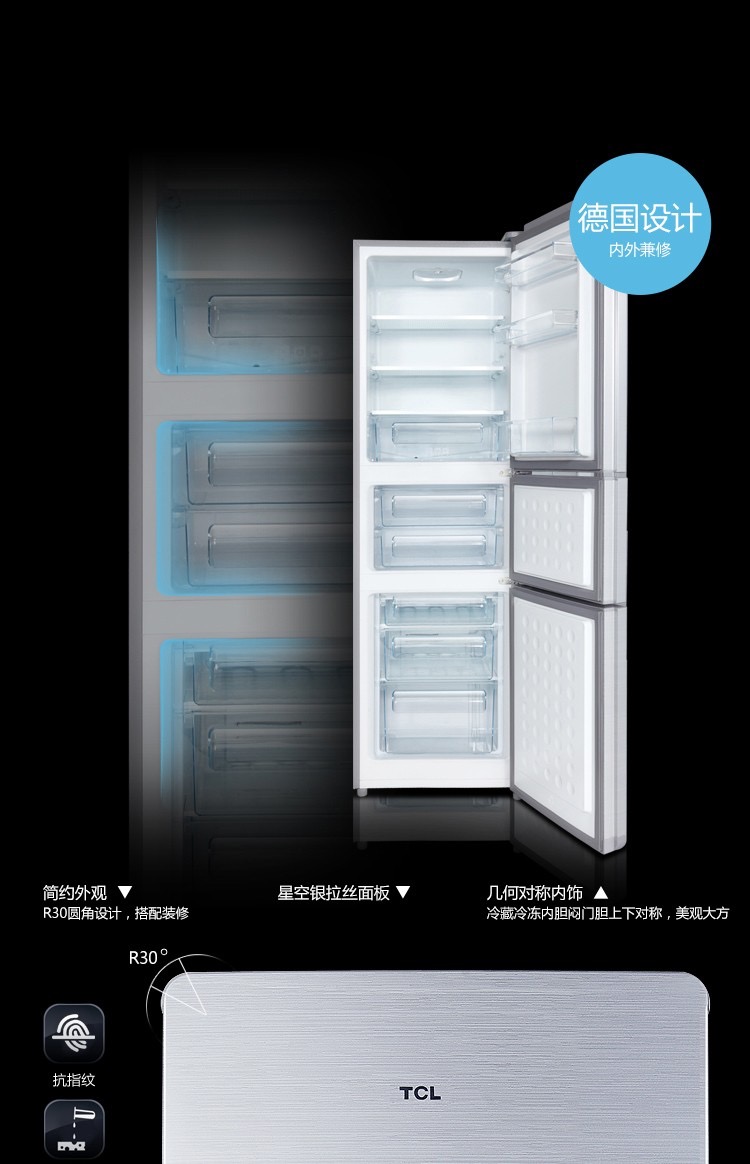 TCL 209L容量 强劲冷冻力 三门三温区(闪白银)209F3-C 闪白银