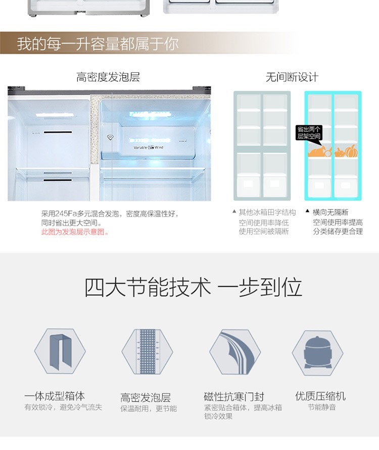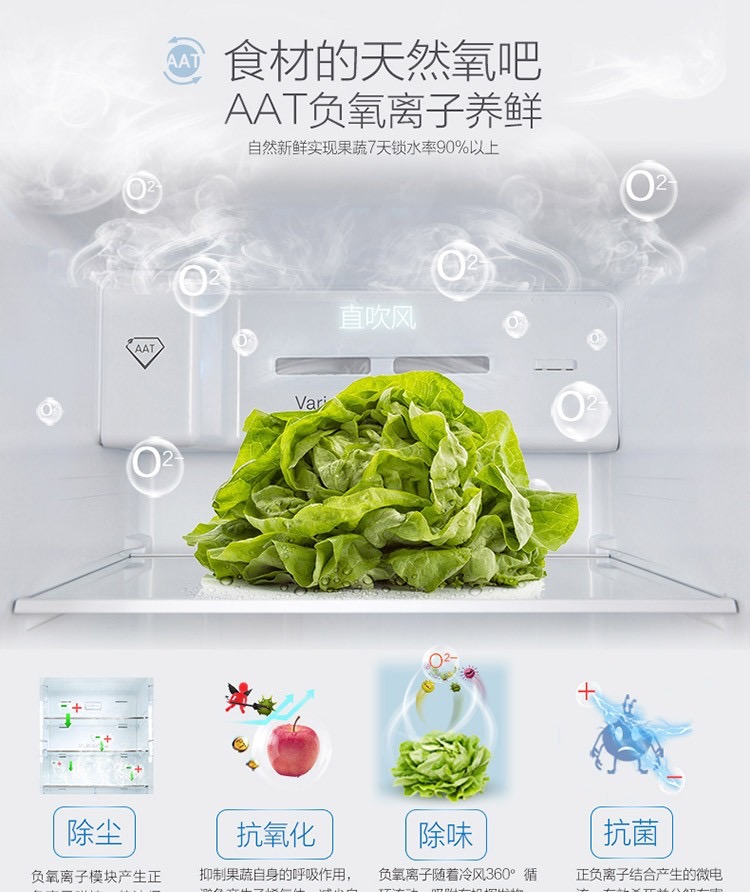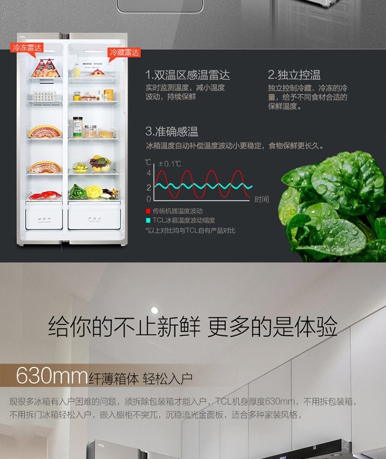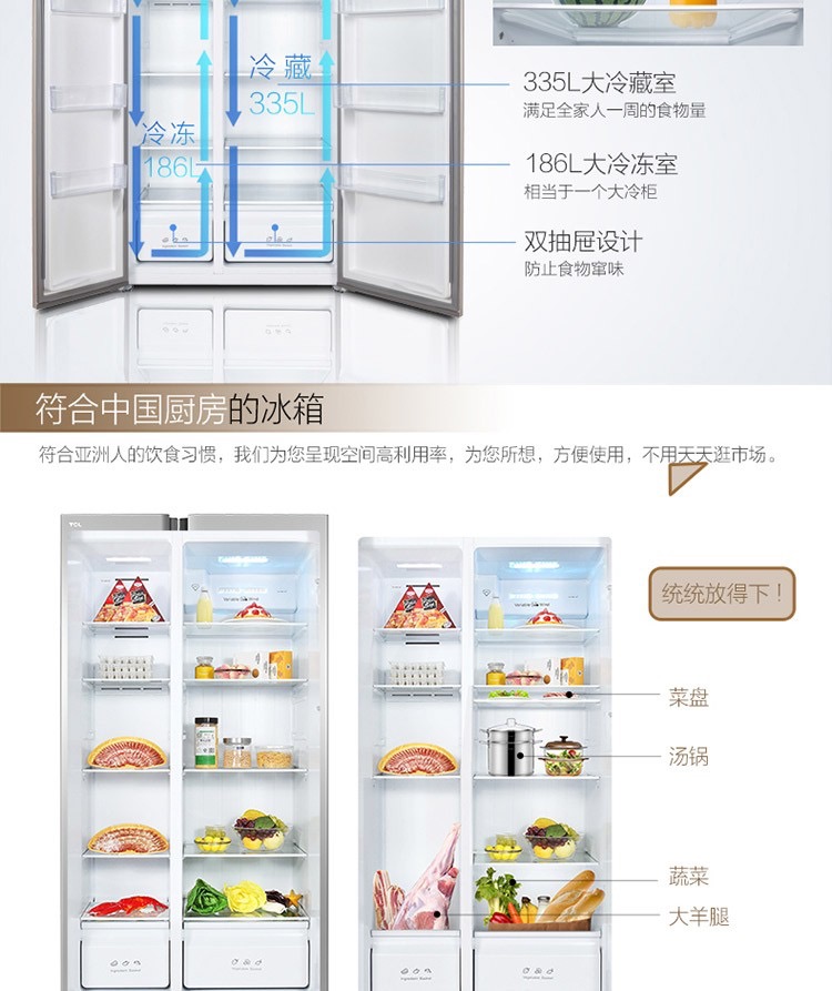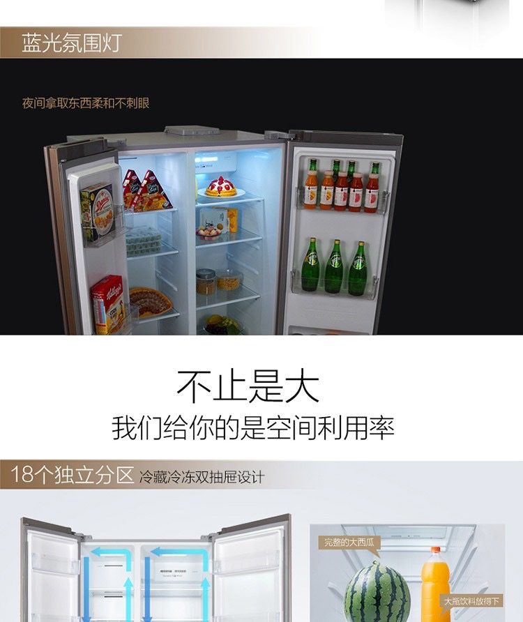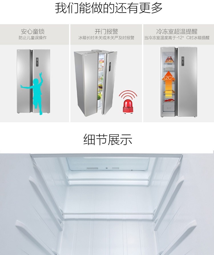 商品名称:TCL 521升对开门冰箱 风冷无霜 AAT负离子养鲜 一体成型 BCD-521CW星辰银