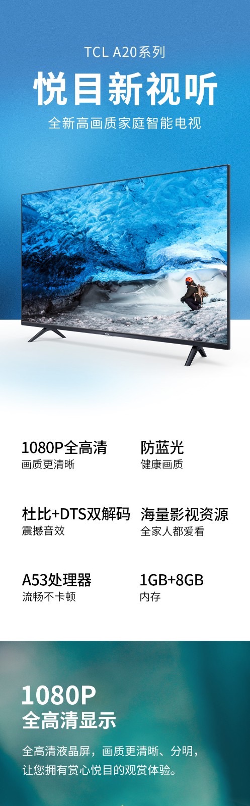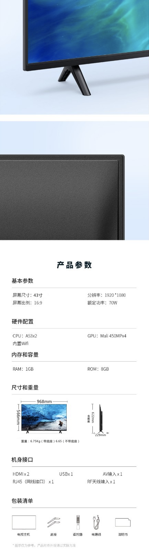商品名称:TCL 43A20 43寸英寸液晶电视机全高清 超薄 人工智能 教育电视