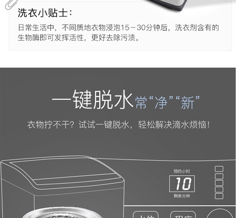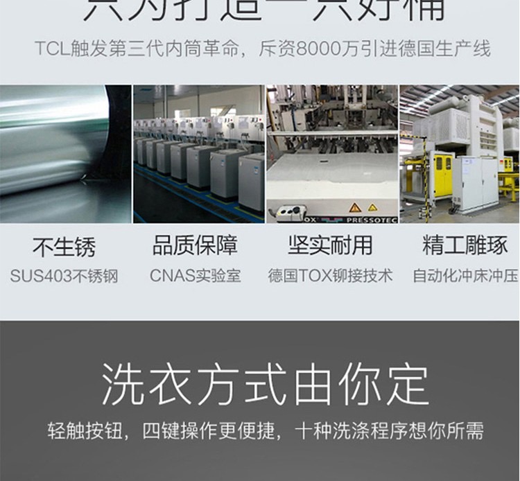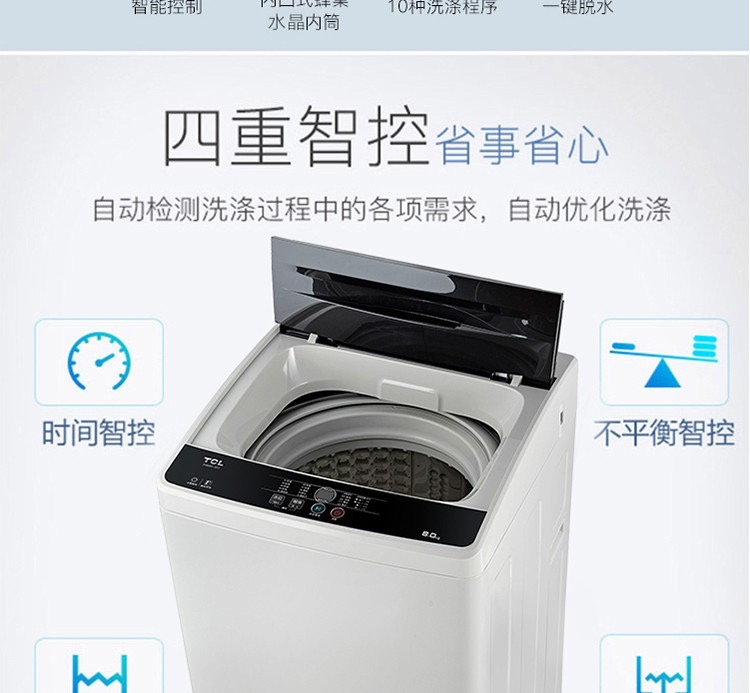 TCL TG-V80芭蕾白8公斤 上排水 全自动 变频 滚筒洗衣机 一级能效高温自清洁 中途添衣一...