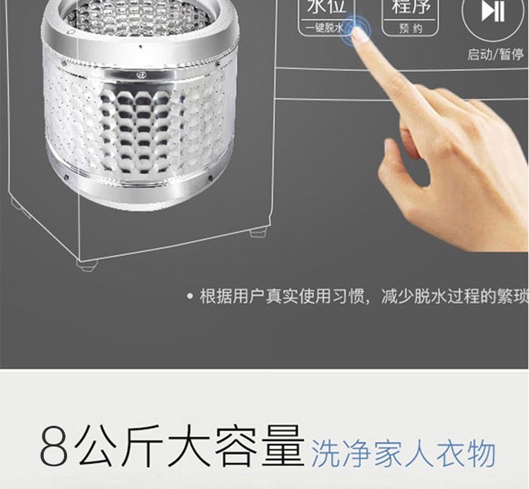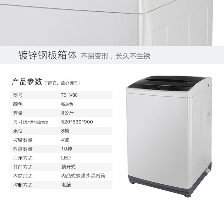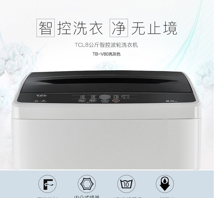 商品名称:TCL TB-V80亮灰色波轮洗衣机节能省电静音八公斤洗衣机
