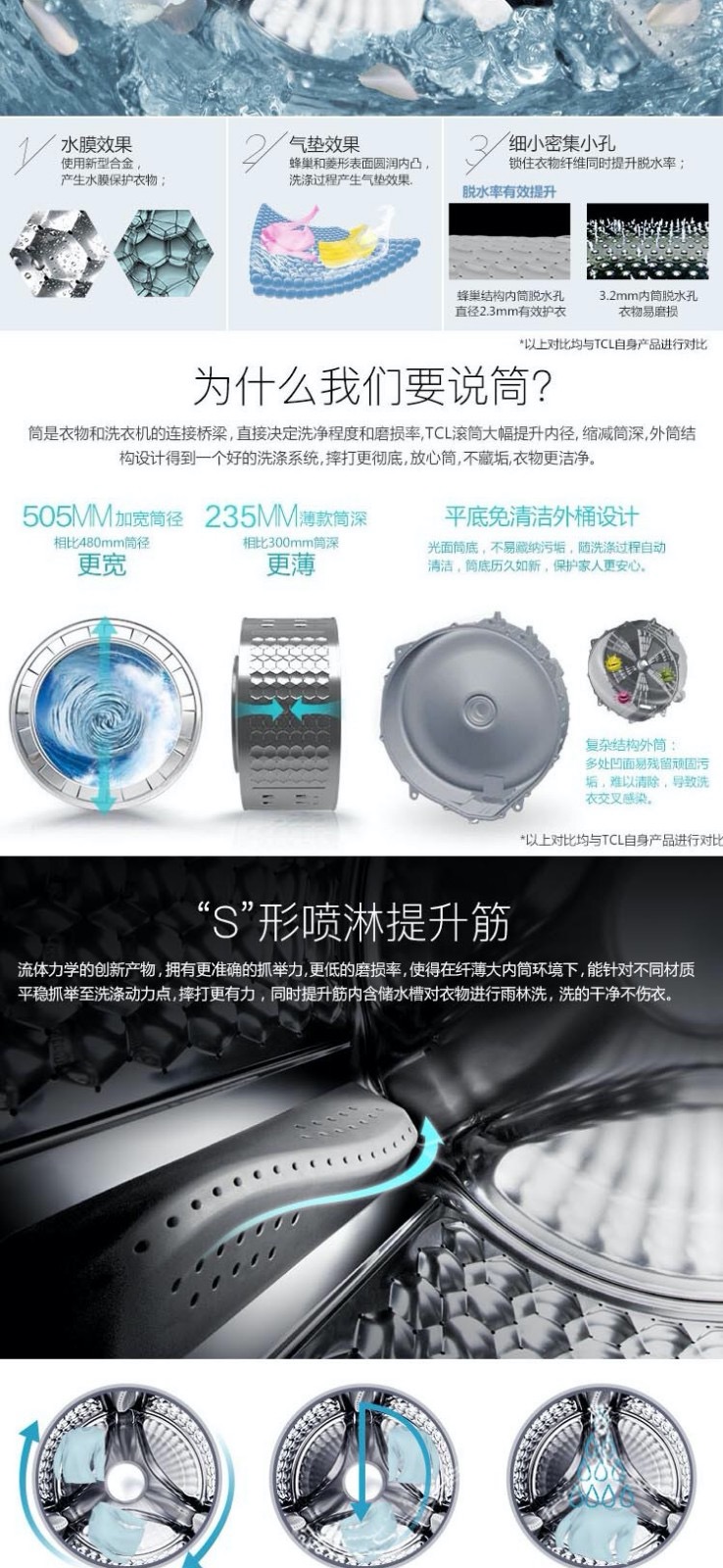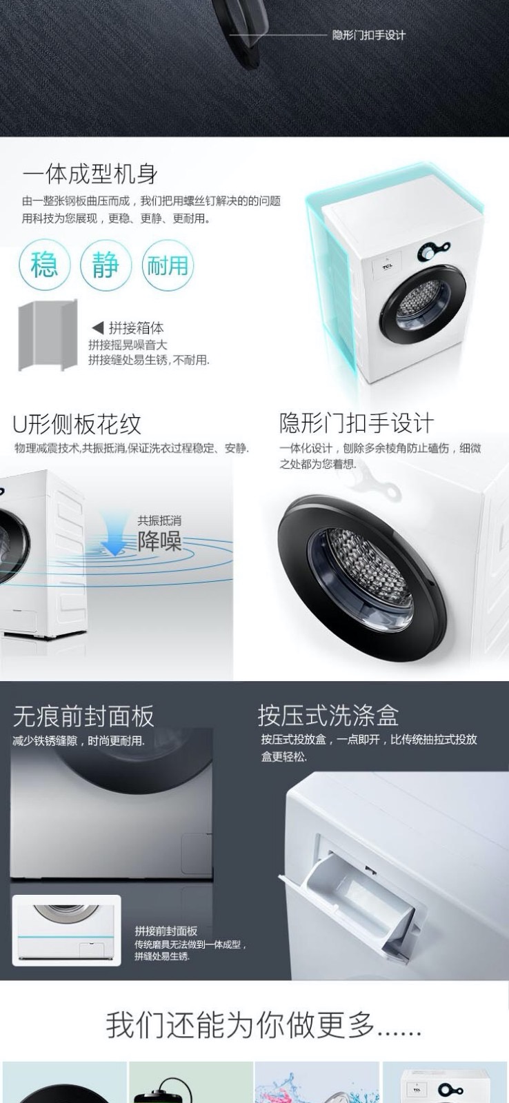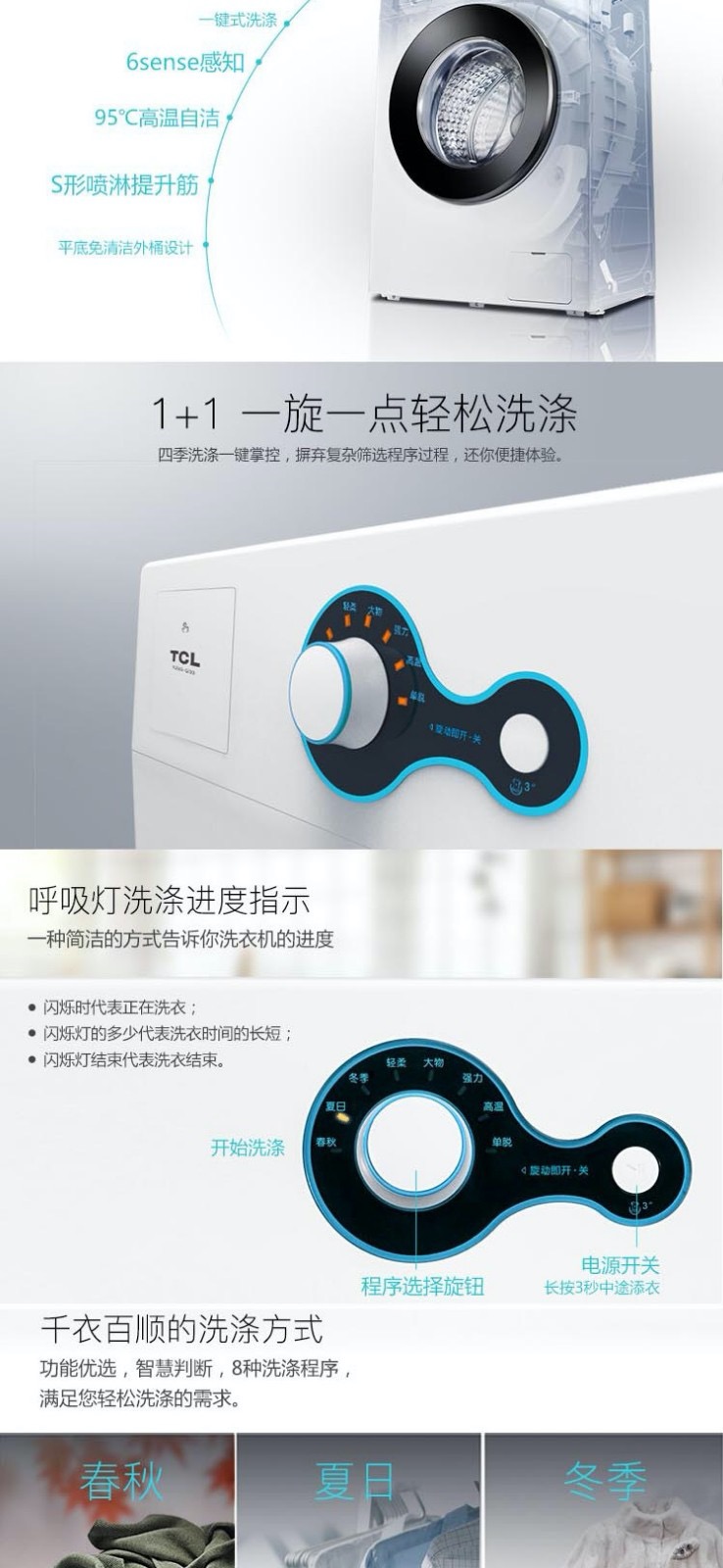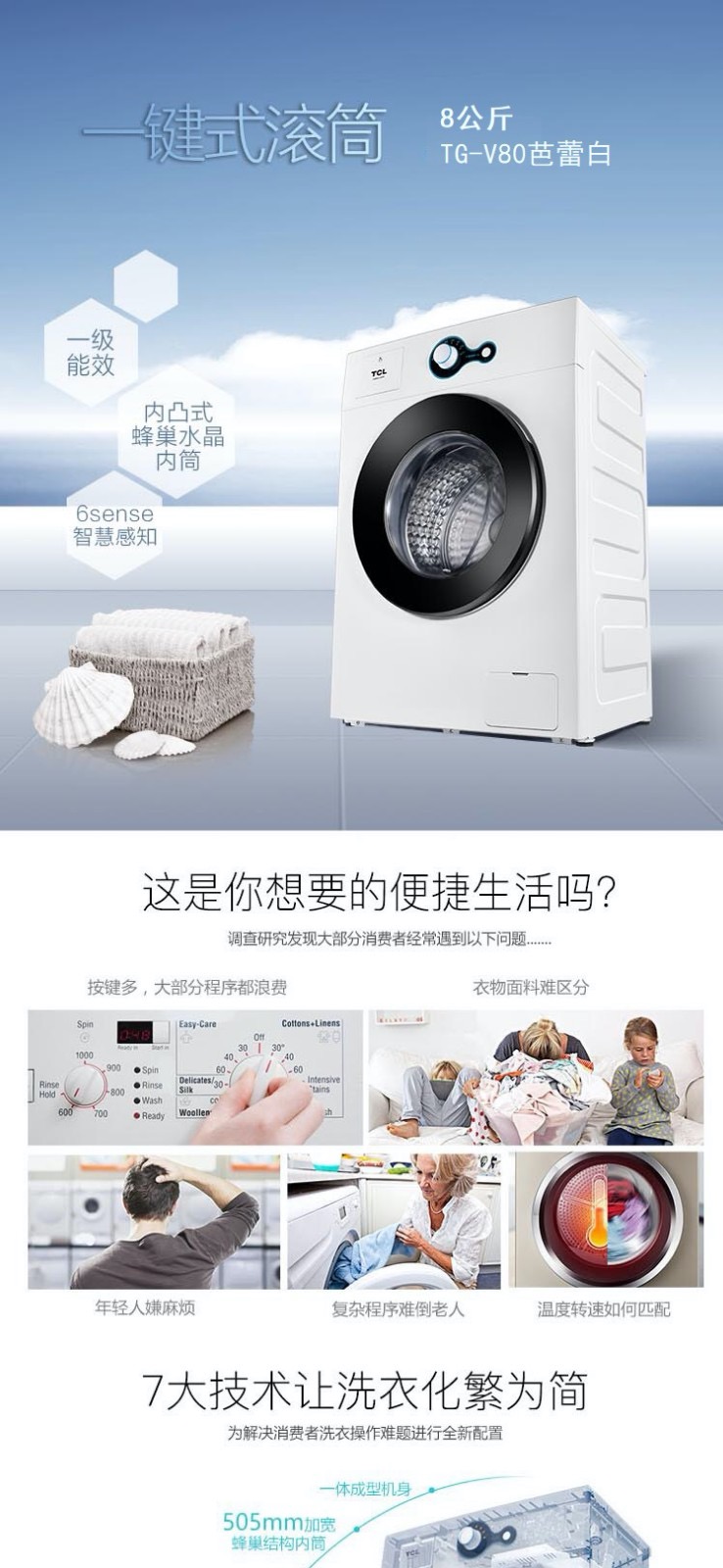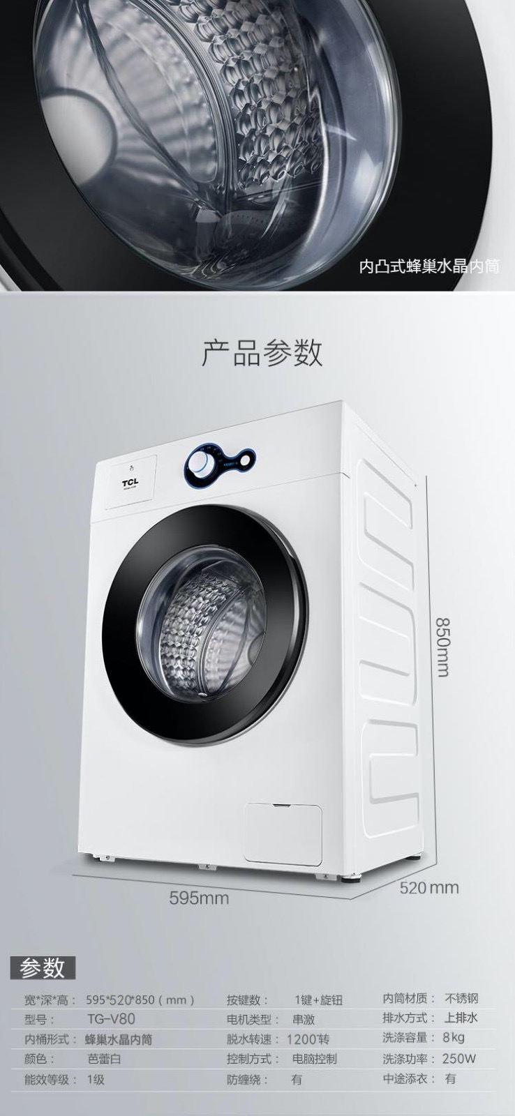 商品名称:TCL TG-V80芭蕾白8公斤 上排水 全自动 变频 滚筒洗衣机 一级能效高温自清洁 中途添衣一键操作