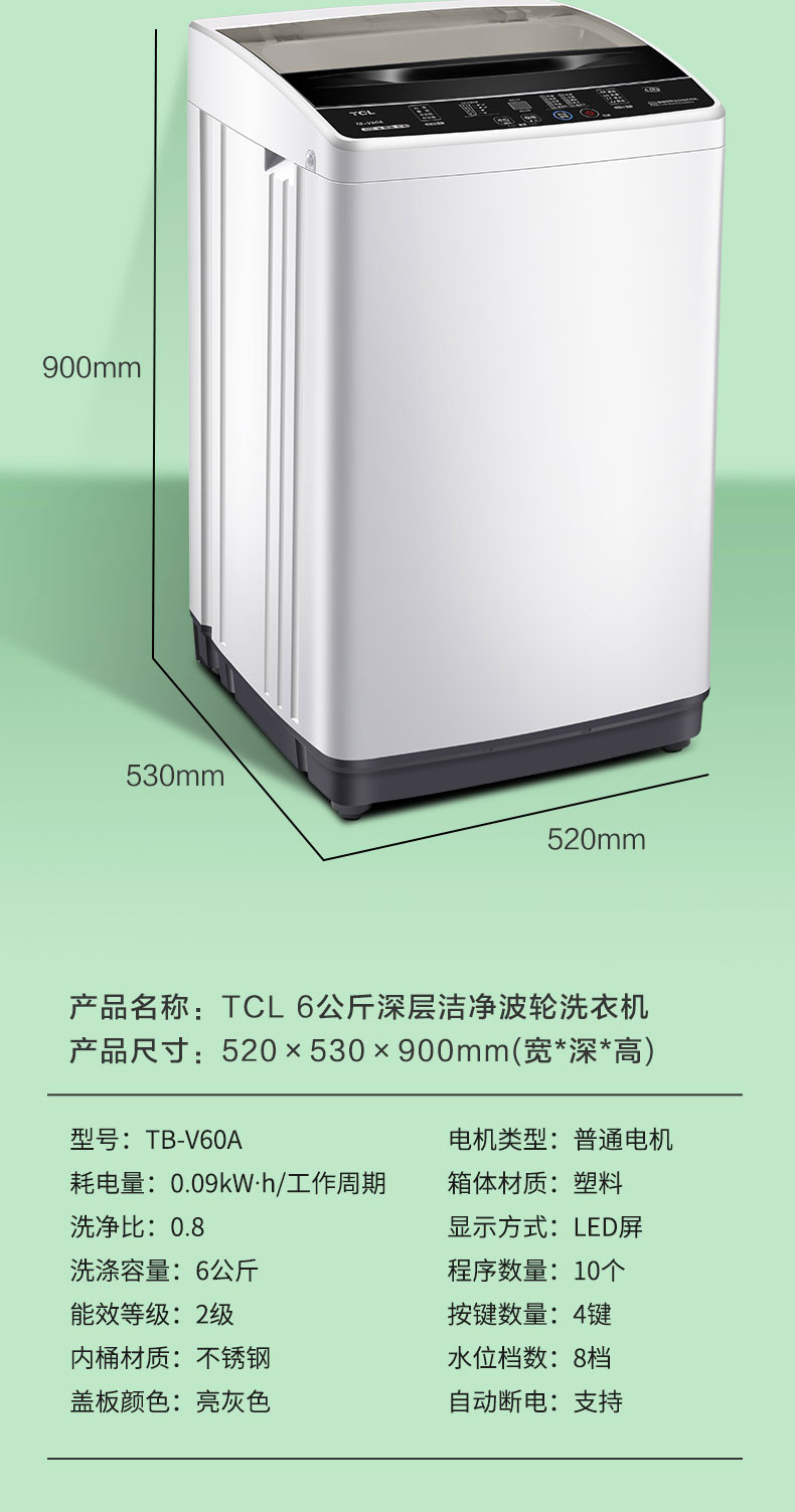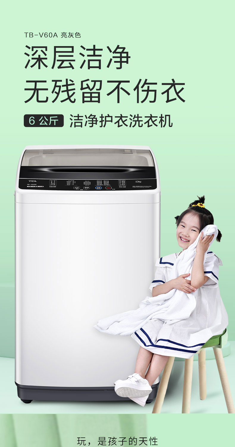 商品名称:TCL 6公斤全自动洗衣机TB-V60A亮灰色