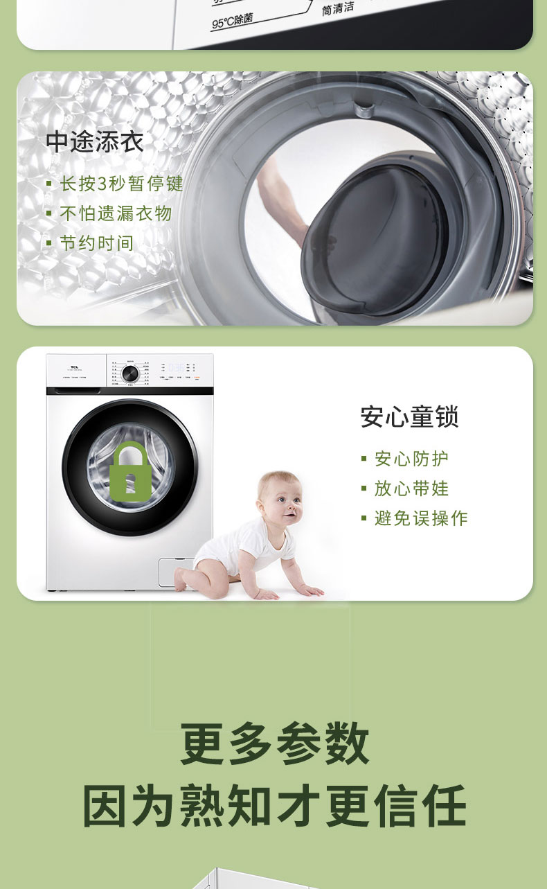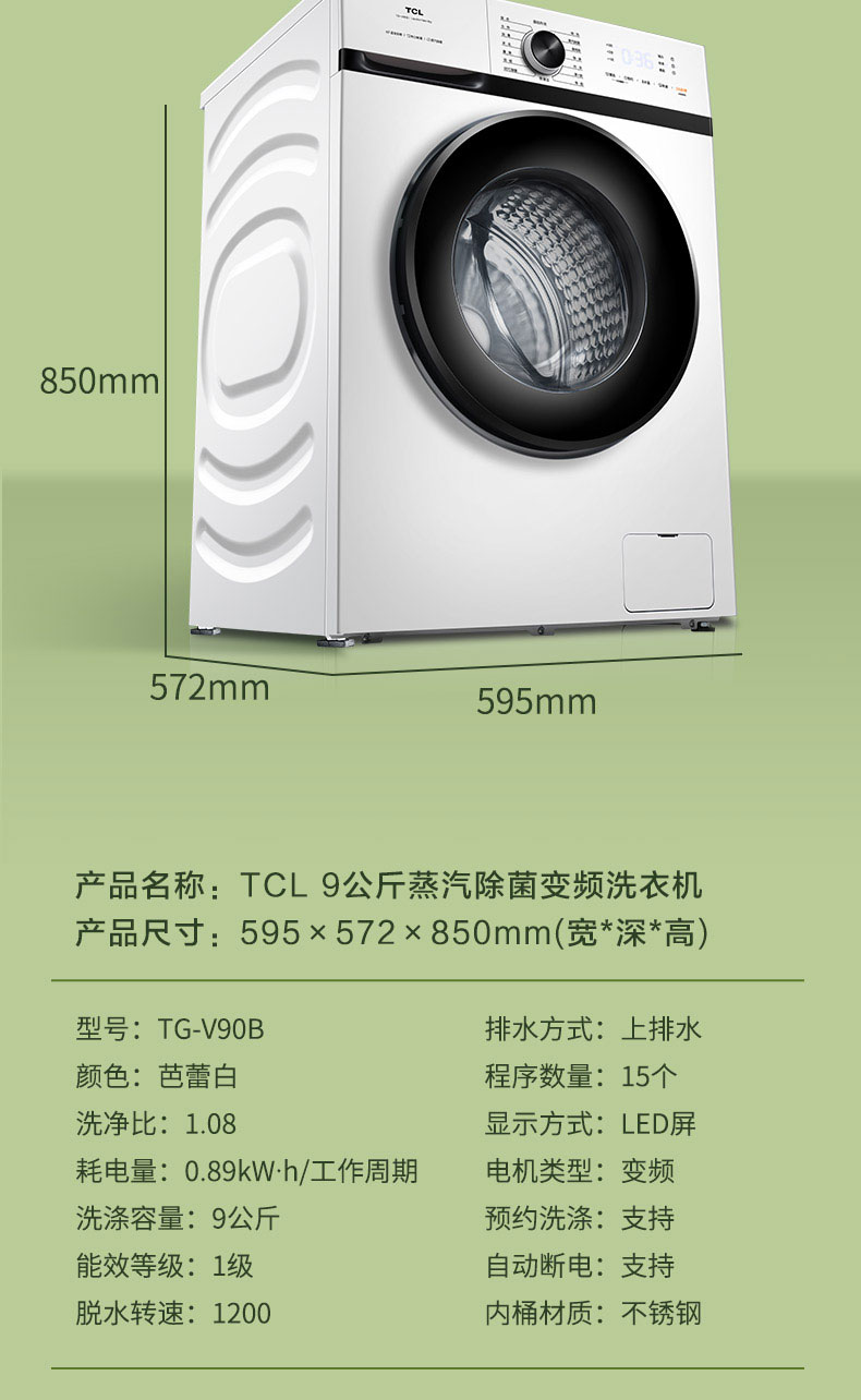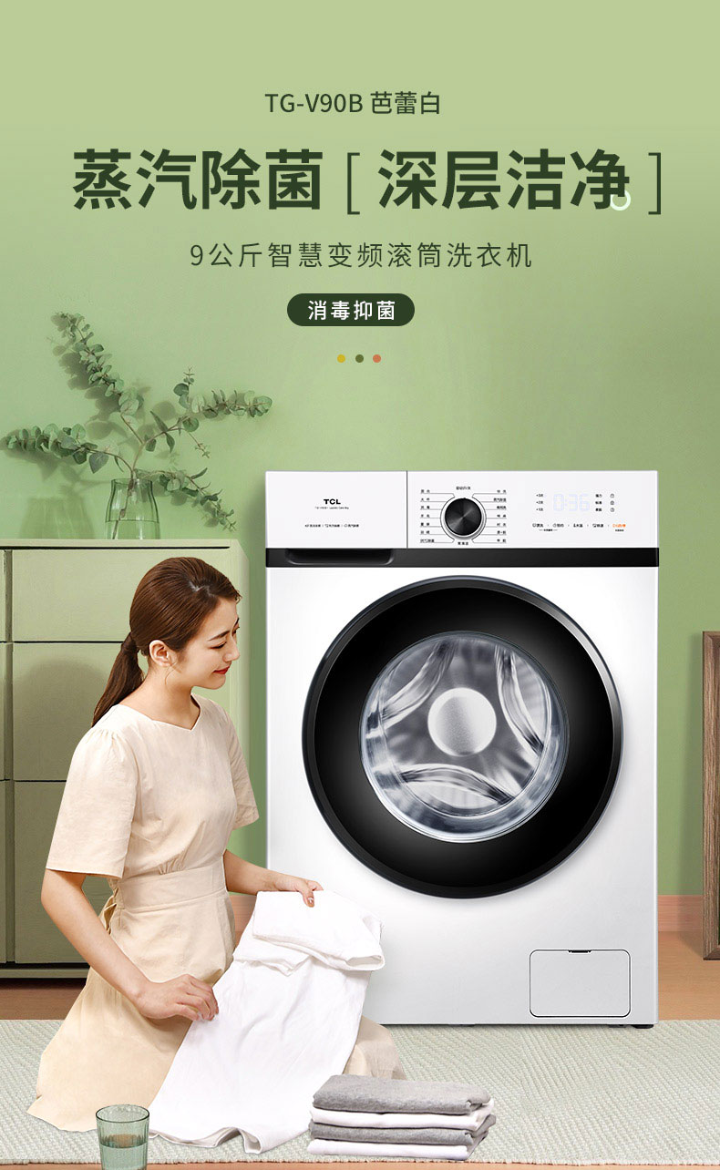 商品名称:TCL 9公斤滚筒洗衣机TG-V90B芭蕾白