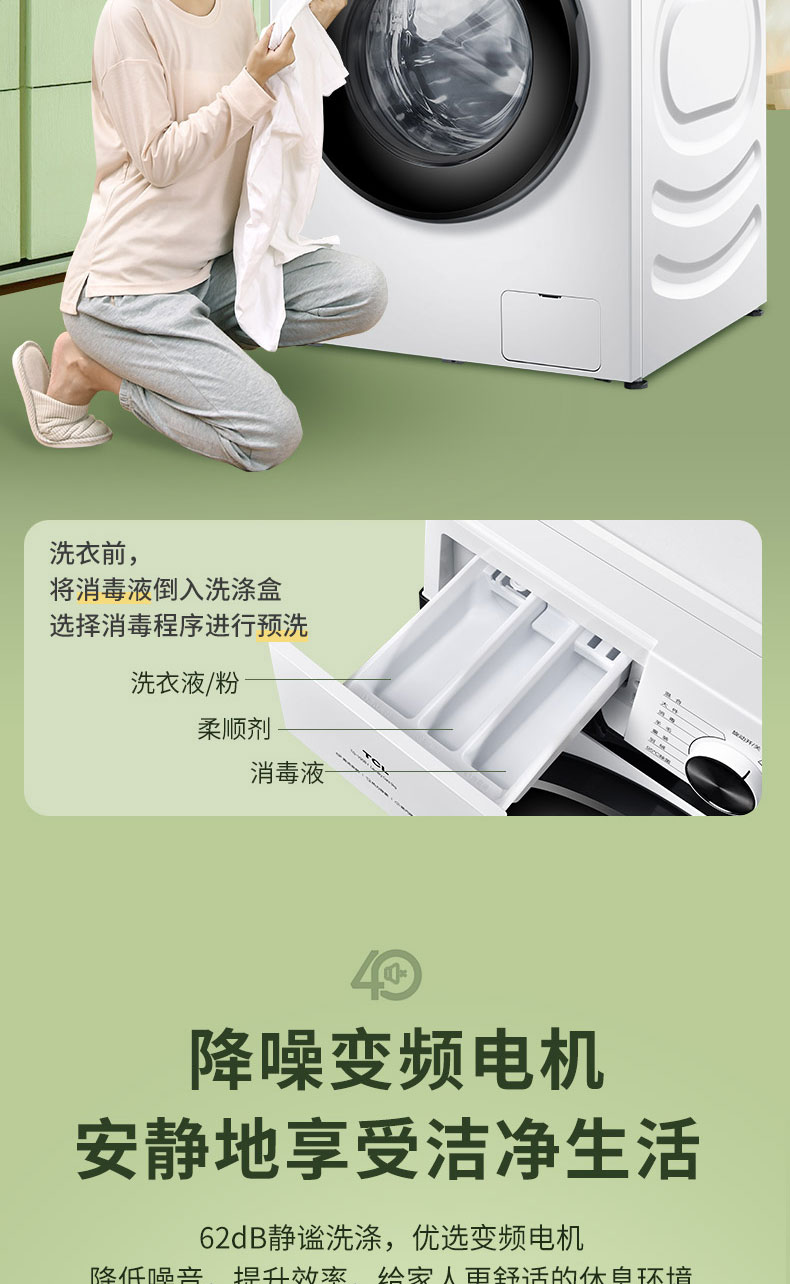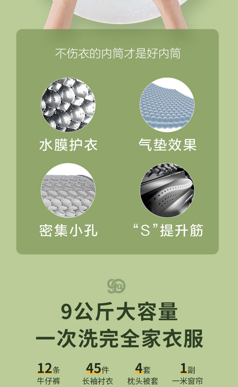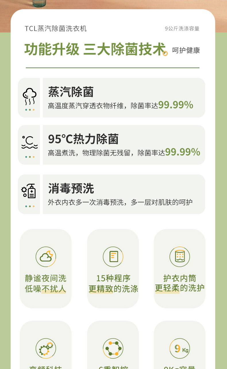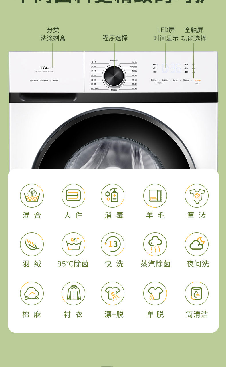 商品名称:TCL 9公斤滚筒洗衣机TG-V90B芭蕾白