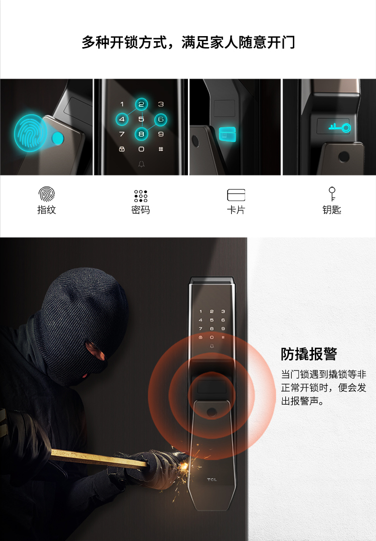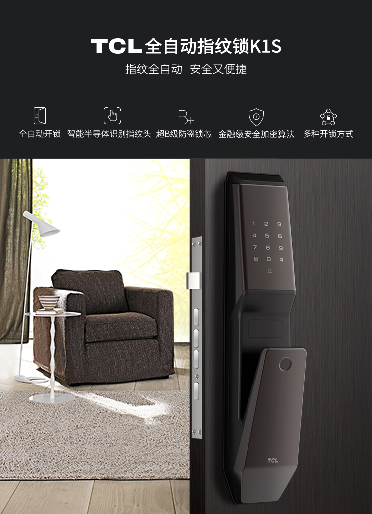 商品名称:TCL指纹锁智能锁家用防盗门锁密码电子锁WIFI联网APP远程智控推拉式全自动门锁K1S K1S非联网版+三年换新+500万财产保险