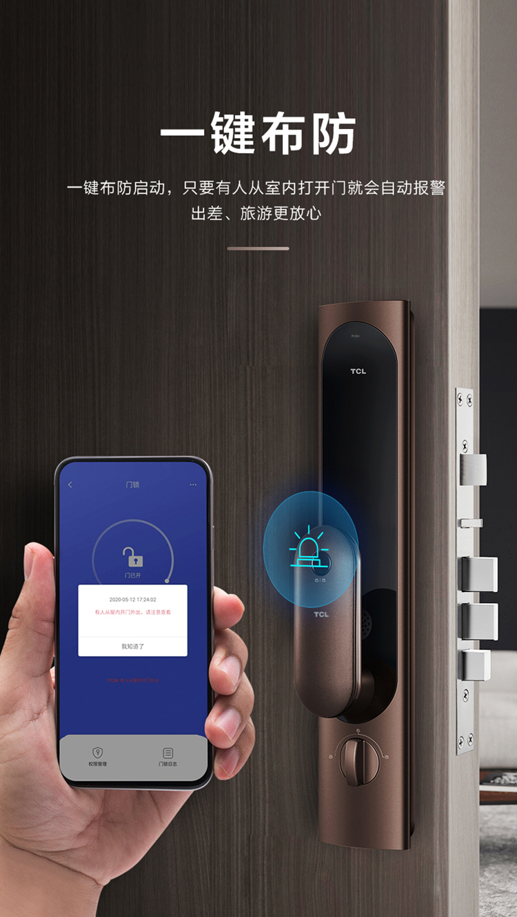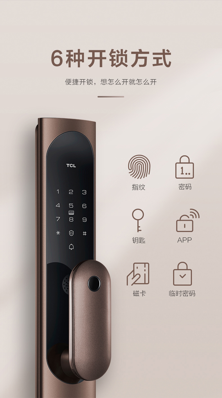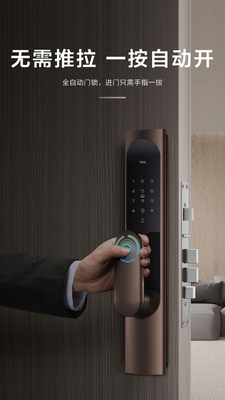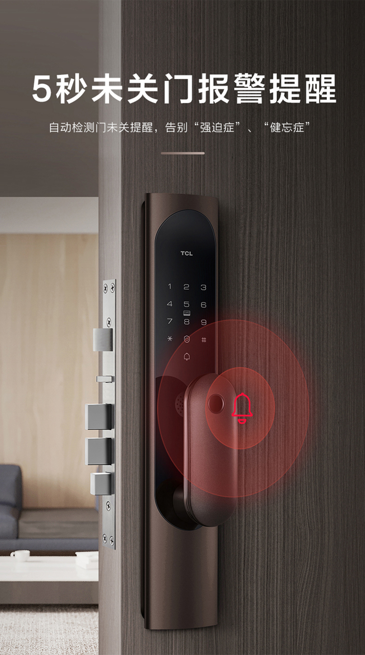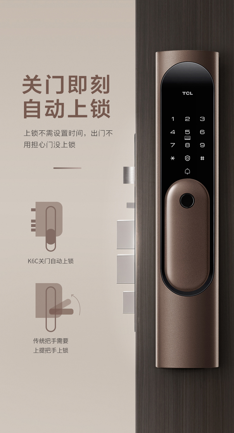 TCL指纹锁智能锁家用防盗门锁密码锁推拉式全自动指纹锁C级锁芯未关门提醒自动反锁K6C 【旗舰款K6C】纳米银抗菌+全自动