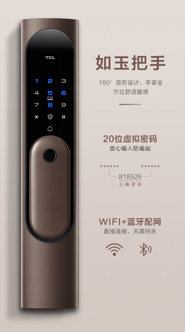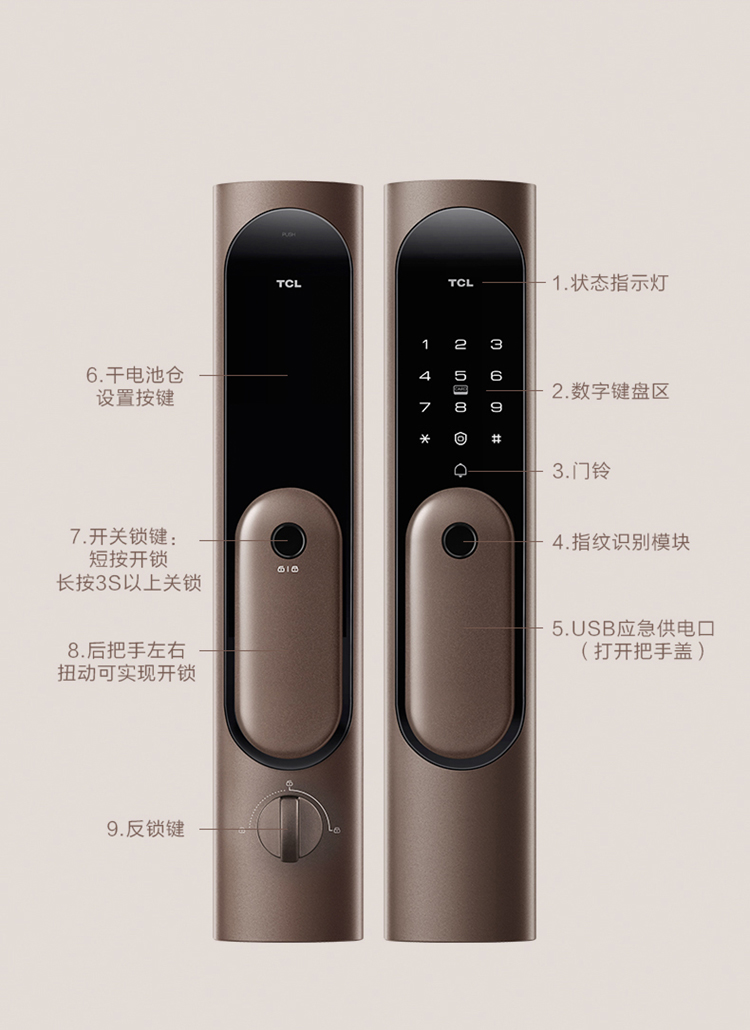 商品名称:TCL指纹锁智能锁家用防盗门锁密码锁推拉式全自动指纹锁C级锁芯未关门提醒自动反锁K6C 【旗舰款K6C】纳米银抗菌+全自动