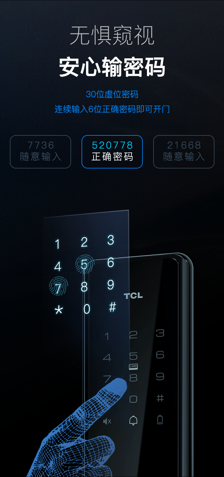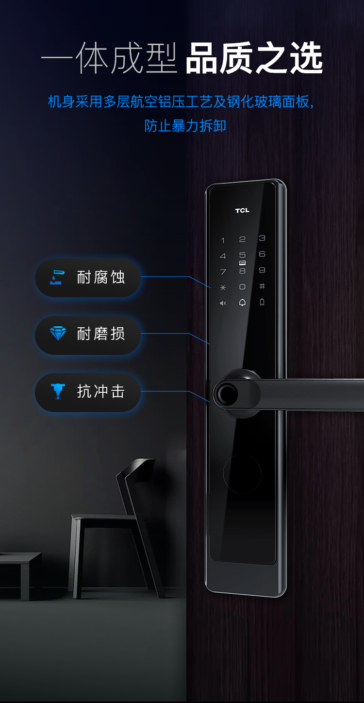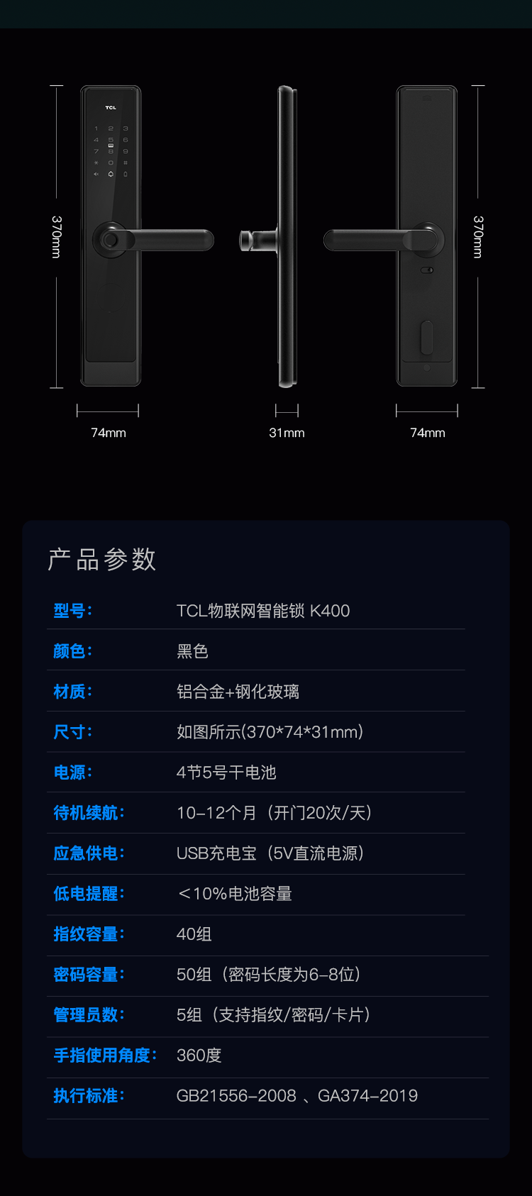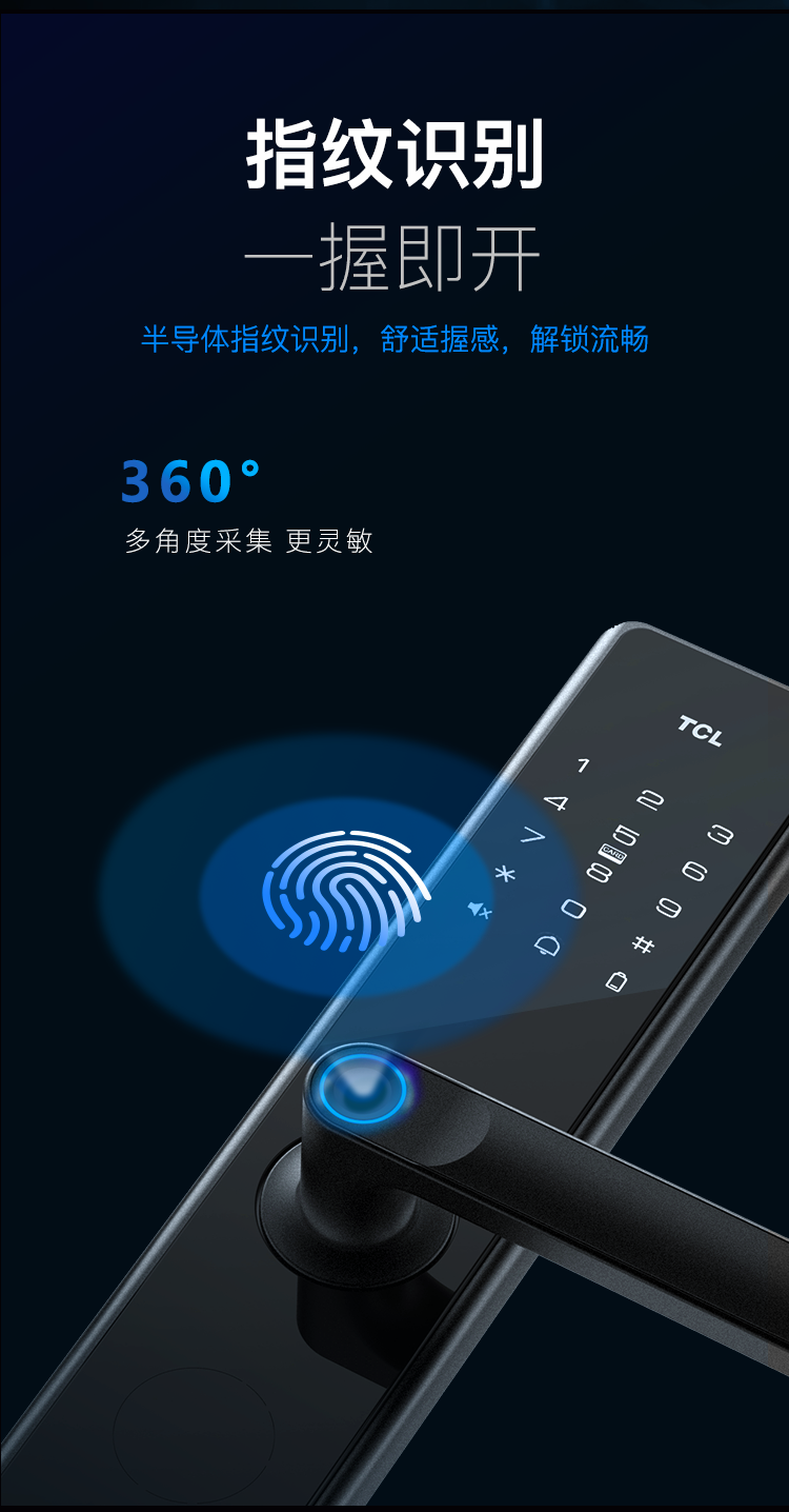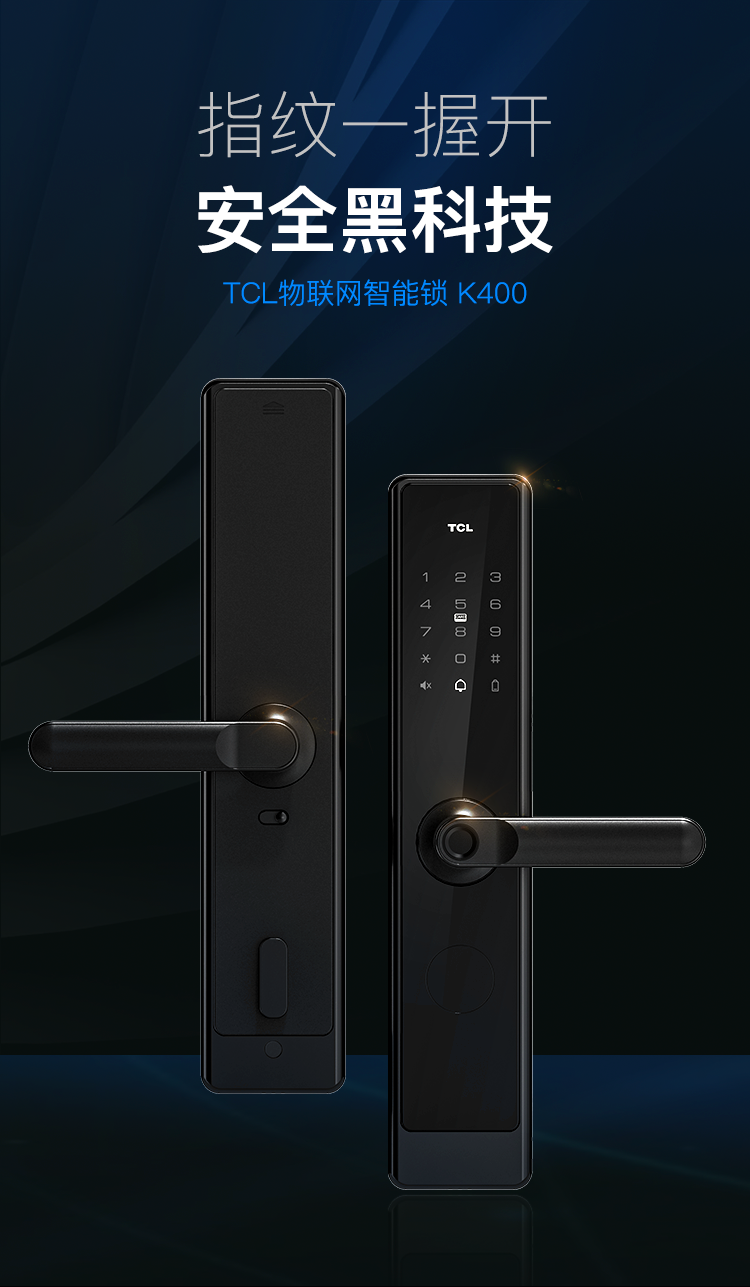 TCL指纹锁智能锁家用防盗门锁密码锁下压式半自动把手款C级锁芯指纹锁K400 【TCL-K400】C级锁芯+AI指纹
