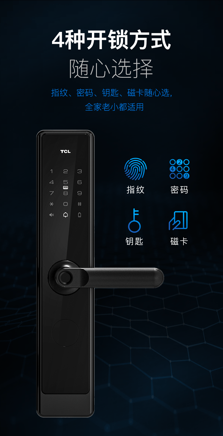 商品名称:TCL指纹锁智能锁家用防盗门锁密码锁下压式半自动把手款C级锁芯指纹锁K400 【TCL-K400】C级锁芯+AI指纹