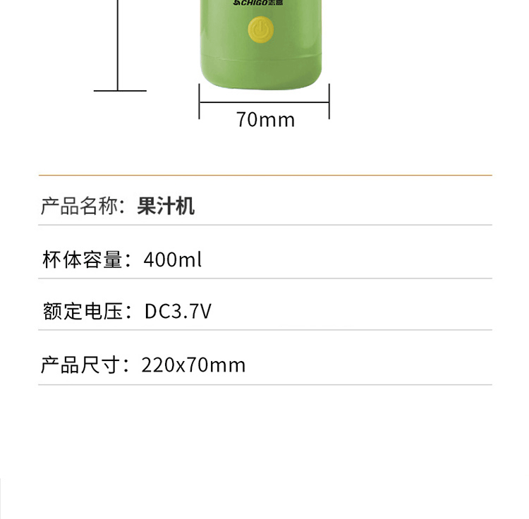 商品名称:志高 TJ-10榨汁杯 果汁机400ml