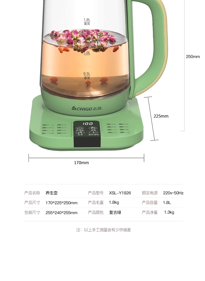 商品名称:志高 XSL-Y1826智能养生壶1.8L