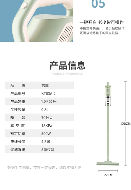 商品名称:志高 ZG-KT03A-2手持式吸尘器4.5M长线ZG-KT03A-2