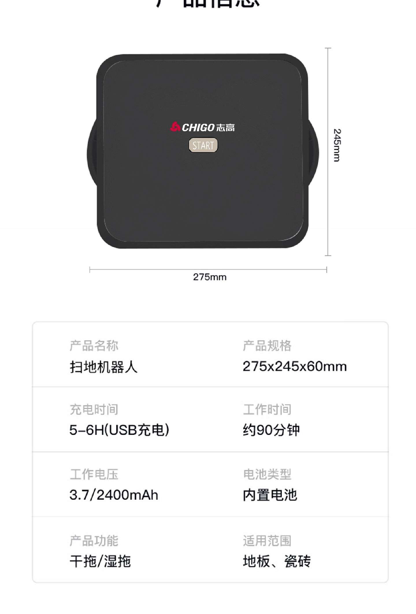 商品名称:志高 智能拖地机器人 干湿两用ZGS-D005