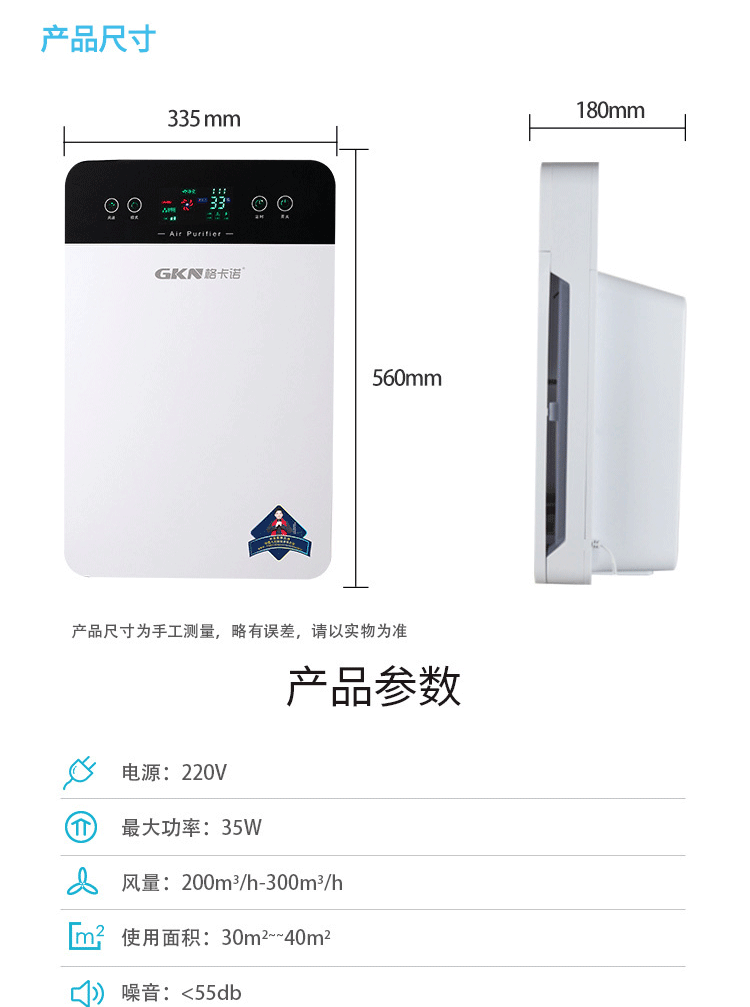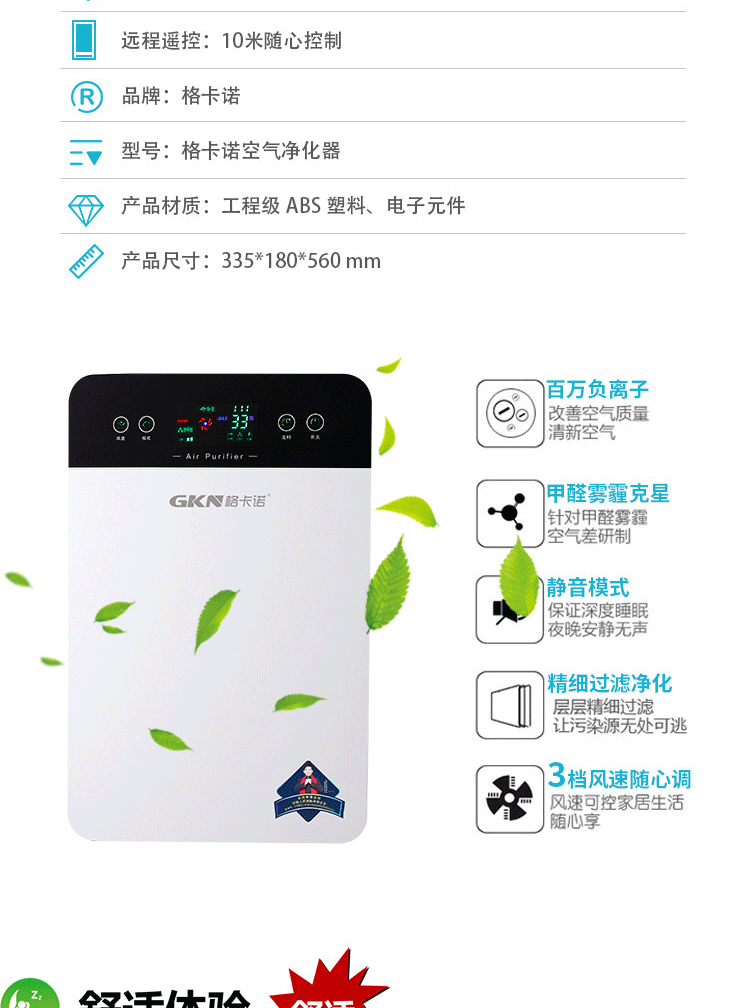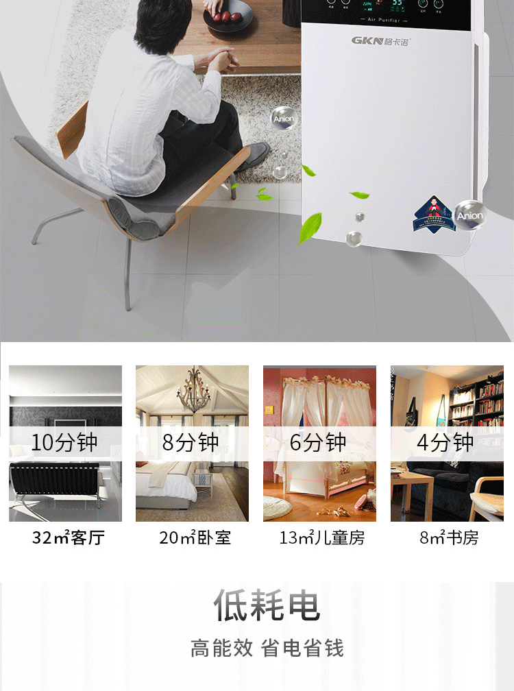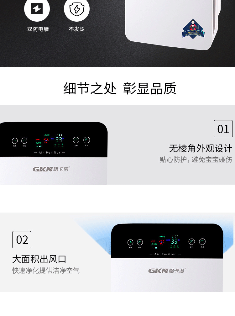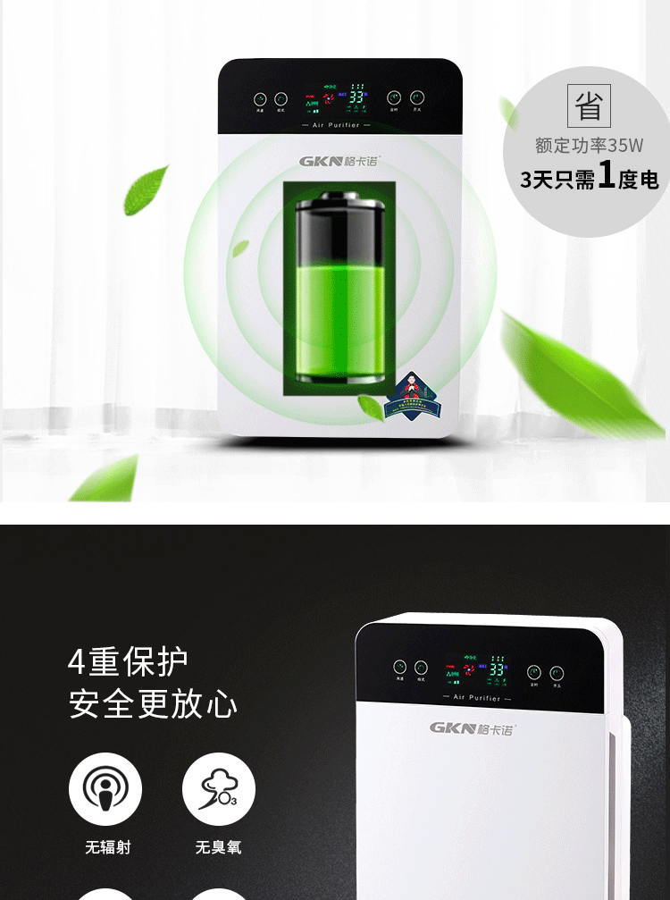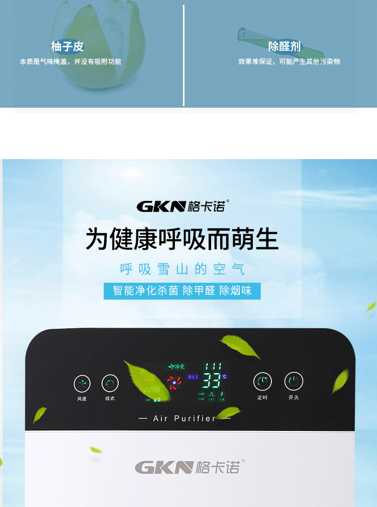 商品名称:格卡诺 GKN-KJ-C空气净化器(方屏)