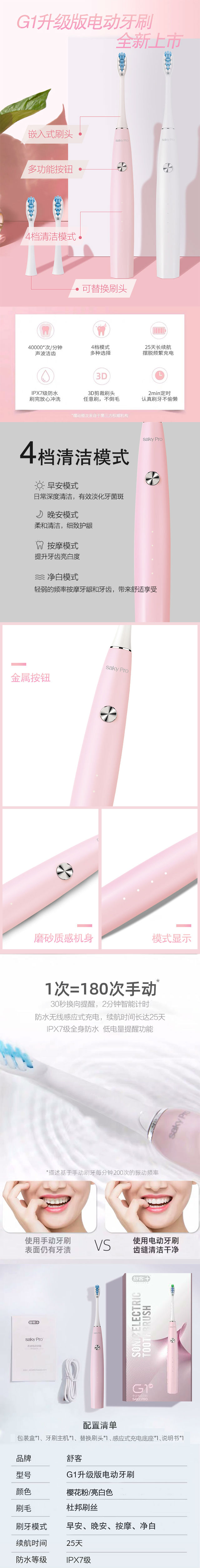 商品名称:舒客 saky Pro声波电动牙刷G1