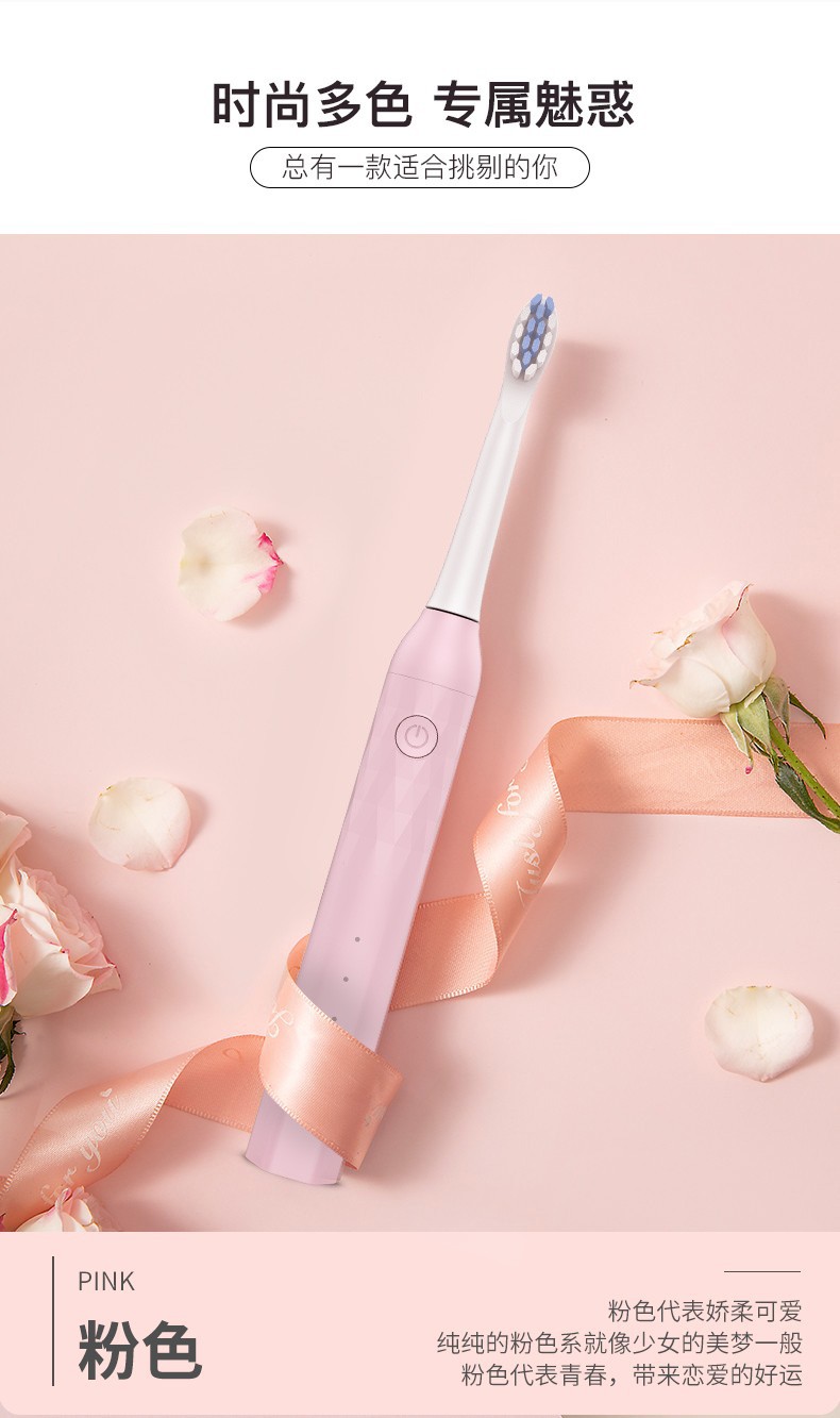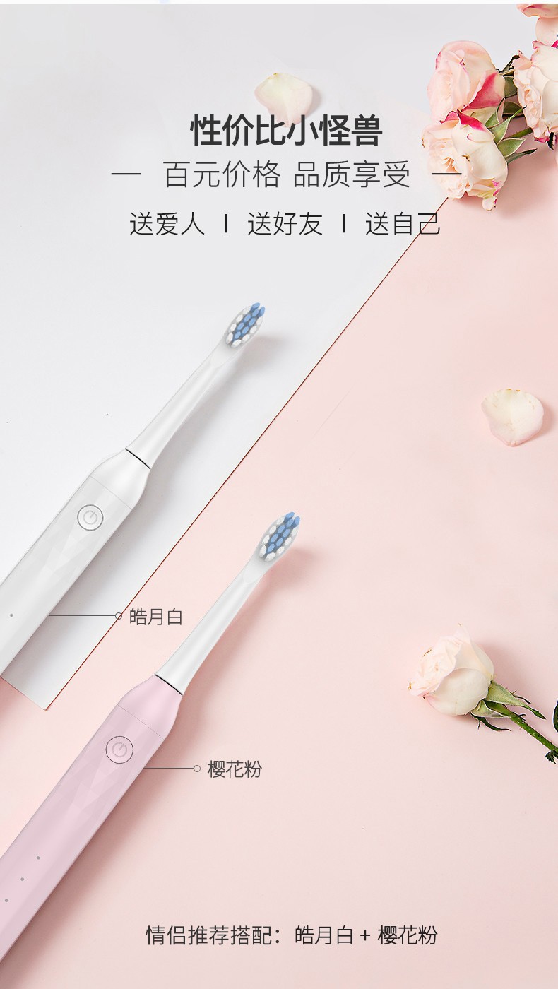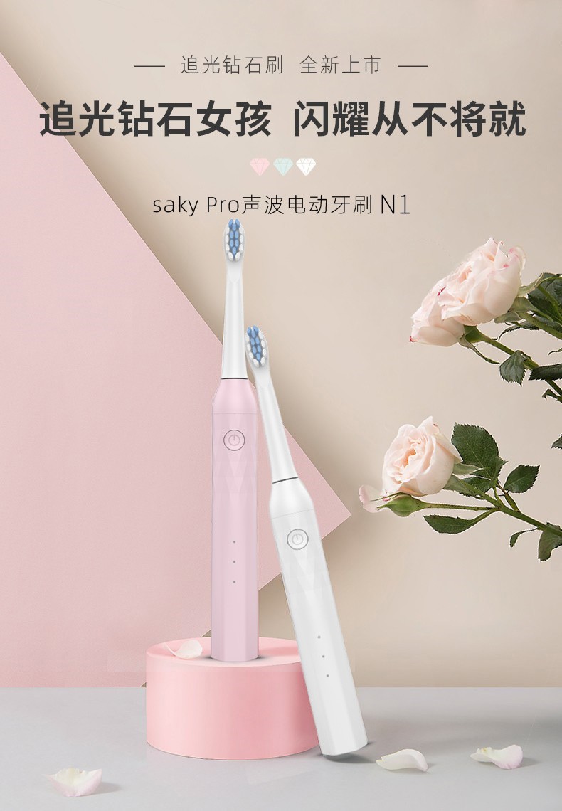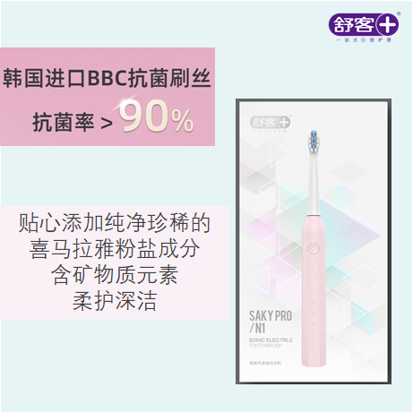 商品名称:舒客 saky Pro声波电动牙刷N1-皓月白+樱花粉(颜色随机)