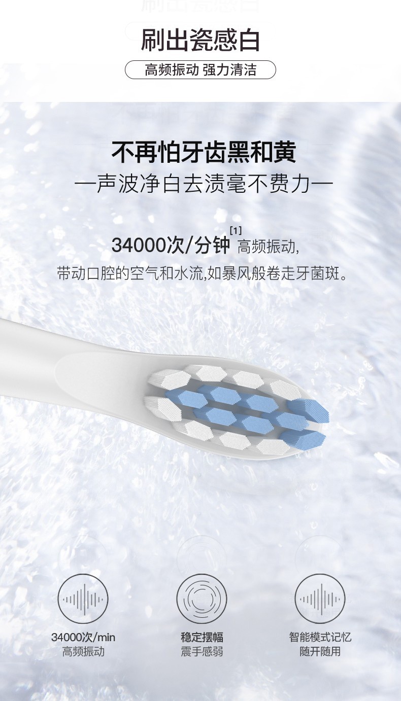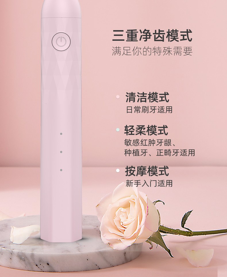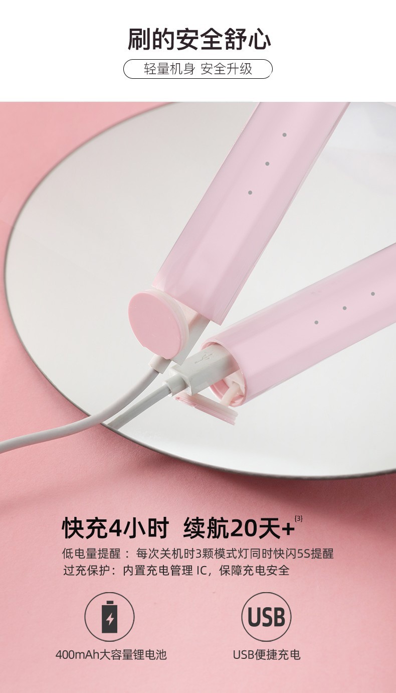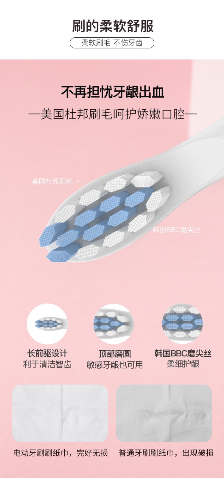 商品名称:舒客 saky Pro声波电动牙刷N1-皓月白+樱花粉(颜色随机)