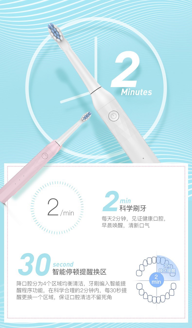 舒客 saky Pro声波电动牙刷N1-皓月白+樱花粉(颜色随机)